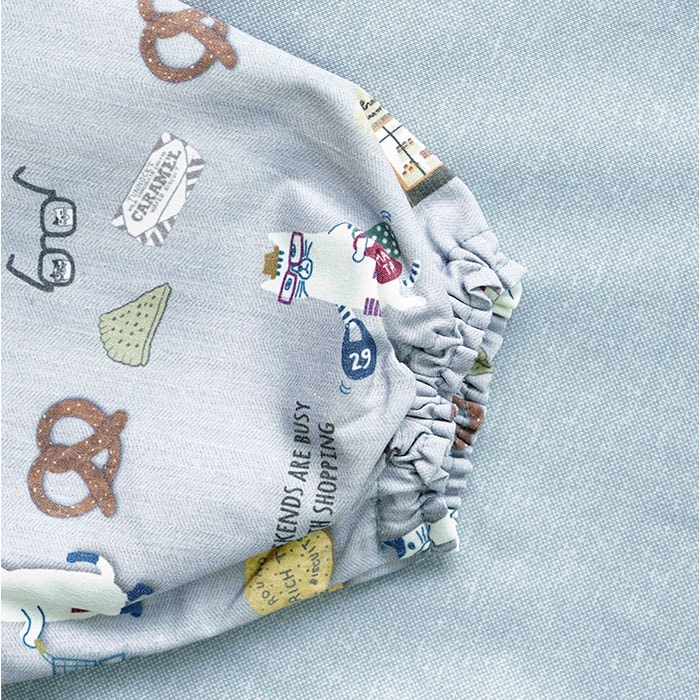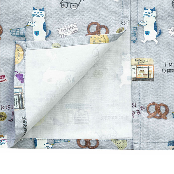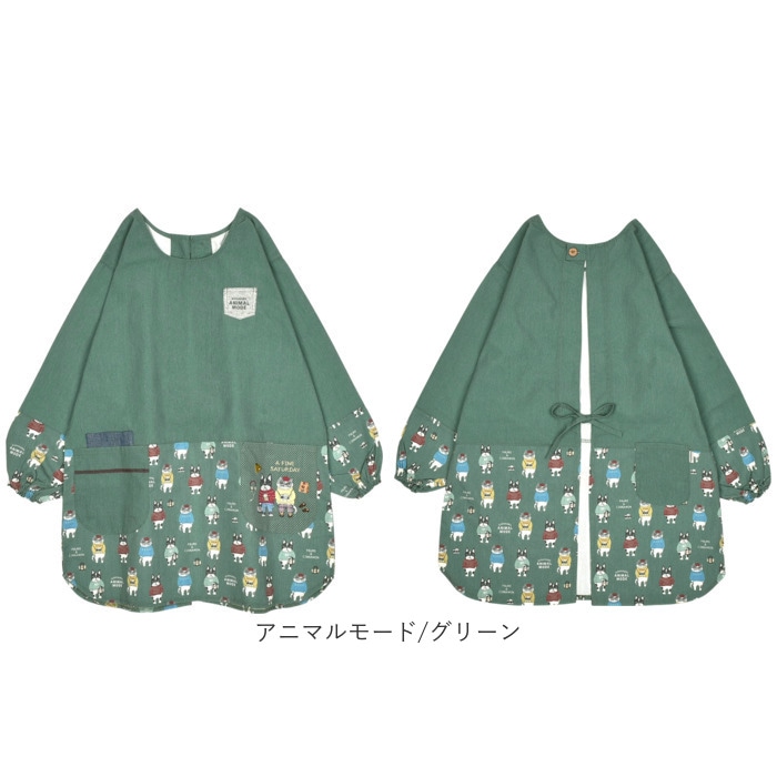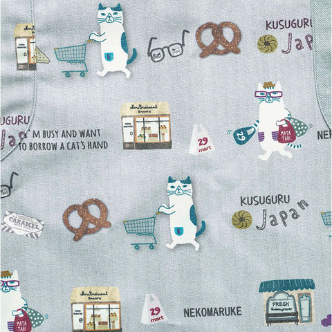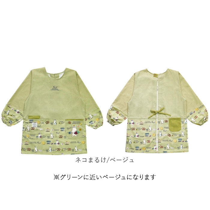 釦リボンあきカッポウ【ネコまるけ/ブルーグリーン】