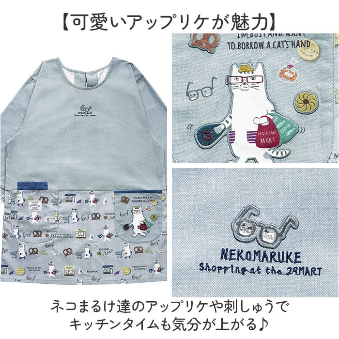 | 商品説明 | 【パッと目を惹くネコちゃんたち♪】見るたびに癒される、可愛いネコちゃんがたまらない!毎日使いたくなるアイテム◎【可愛いアップリケが魅力】ネコまるけ達のアップリケや刺しゅうでキッチンタイムも気分が上がる♪【機能性も充実!】スマホも入る大きめのポケット2つに、面ファスナー付きのポケット、背面にもポケットを配置。【袖口にはアクセント!】袖口部分の柄切り替えでさりげないおしゃれ感。【お洋服をしっかりカバー】家事やお仕事の汚れからしっかりガード。おしゃれさと機能性を両立。【KUSUGURU JAPANとは☆】やたら猫ばっかりをコンセプトに布雑貨を作成。オリジナルキャラの「ネコまるけ」が人気! |