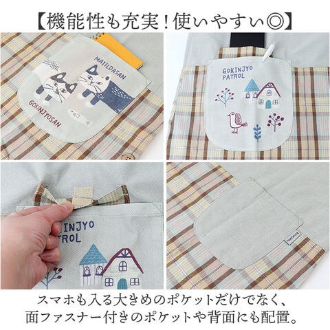 | 商品説明 | 【ほっこりデザインに癒される♪】スポっと被るだけでOKのラクチン仕様。「脇釦あきエプロン」が登場。【アニマルたちの可愛さで気分UP】毎日の家事やお仕事の気分がアガる、キュートなデザイン!毎日使うものだから可愛さは大切☆【簡単着用で結び直し不要!】被るだけで着用できる、ラクチンな作り。腰ひもの結び直しが不要!サイドにはボタン付き。【コットン混のナチュラルさ♪】ソフトタッチで軽く、ストレスフリーの着心地を実現。ナチュラルな風合いも大人可愛い。【機能性も充実!使いやすい◎】スマホも入る大きめのポケットだけでなく、面ファスナー付きのポケットや背面にも配置。【お洋服をしっかりカバー】膝丈ほどの長さで、家事やお仕事の汚れからしっかりガード。おしゃれさと機能性を両立。【様々なシーンで大活躍する】家事タイムはもちろん、ガーデニング、DIY、サロンやカフェなどのお仕事でも使える。【KUSUGURU JAPANブランド】やたら猫ばっかりをコンセプトに布雑貨を作成。オリジナルキャラの「ネコまるけ」が人気♪ |