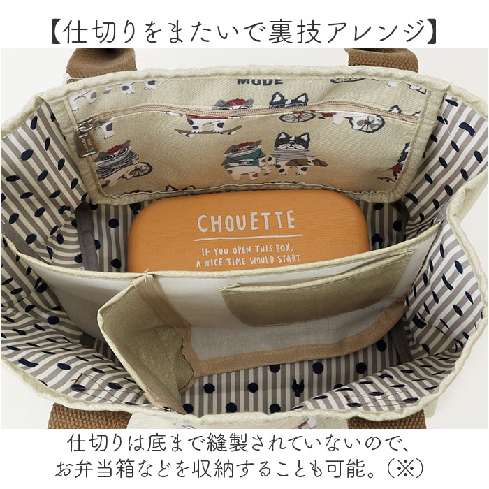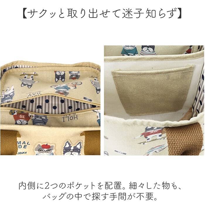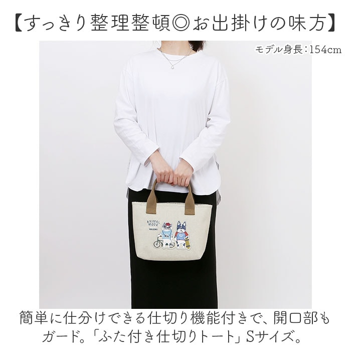 ふた付き仕切りトート Sサイズ【アニマルモード.ベージュ2】
