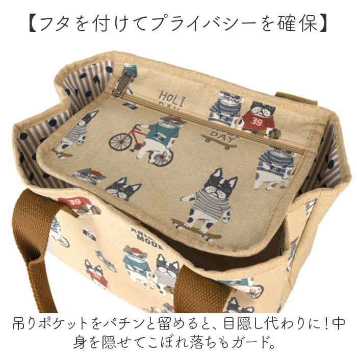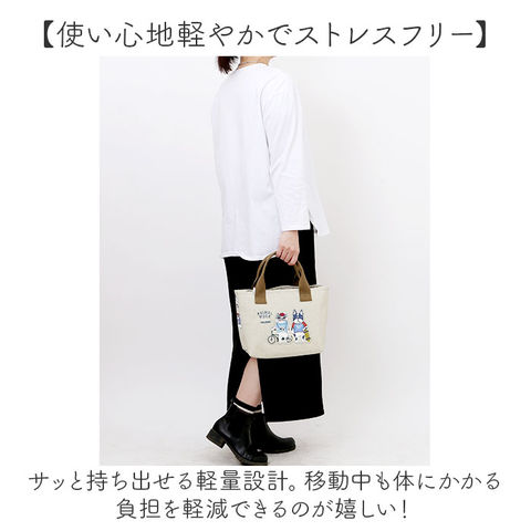 | 商品説明 | 【すっきり整理整頓◎お出掛けの味方】簡単に仕分けできる仕切り機能付きで、開口部もガード。「ふた付き仕切りトート」Sサイズ。【コーデのアクセントになるデザイン】個性派揃いのクスグルキャラクター柄♪思わず二度見してしまいそうな味わいが魅力。【フタを付けてプライバシーを確保】吊りポケットをマグネットで留めると、目隠し代わりに!中身を隠せてこぼれ落ちもガード。【ラクラク仕分けで収納上手に♪】内側を仕切りで分けて、3つのスペースに。中身がひと目で確認できるのが嬉しい!【仕切りをまたいで裏技アレンジ】仕切りは底まで縫製されていないので、お弁当箱などを収納することも可能。(※)収納物の厚みなどにより、収納できない場合もあります。【A5サイズ対応の大ルーム】A5サイズが横向きにすっぽり。長財布なども収納でき、小物がざっくりまとまるサイズ感。【使い勝手の良い中ルーム】ミニポーチやサニタリーグッズなど。色んな小物をINできる、ちょうどいい大きさ。【ペットボトルが収納できる小ルーム】500mlペットボトルや折りたたみ傘を縦向きに収納。倒れる心配もなく安心。【サクッと取り出せて迷子知らず】内側に2つのポケットを配置。細々した物も、バッグの中で探す手間が不要。【安定した状態で持ち運び可能】取り外し自在な底板付き。バッグの中でアイテムが動きにくく、安定感をキープ。【使い心地軽やかでストレスフリー】サッと持ち出せる軽量設計。移動中も体にかかる負担を軽減できるのが嬉しい!【選ぶのも楽しいバリエーション】お気に入りを見つけて、一緒にお出掛け☆人と被りにくく、ちょっとしたギフトにも。【ポケット仕様】内側:オープンポケット×1、ファスナー吊りポケット×1 |