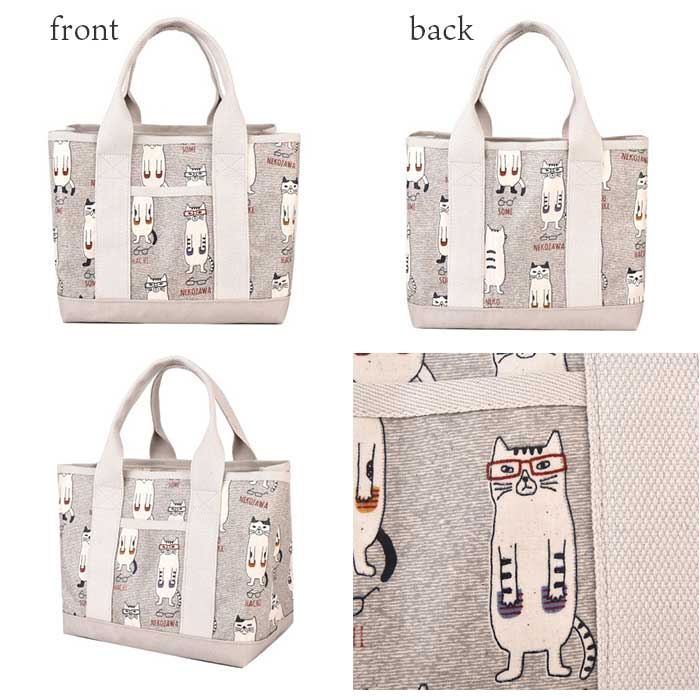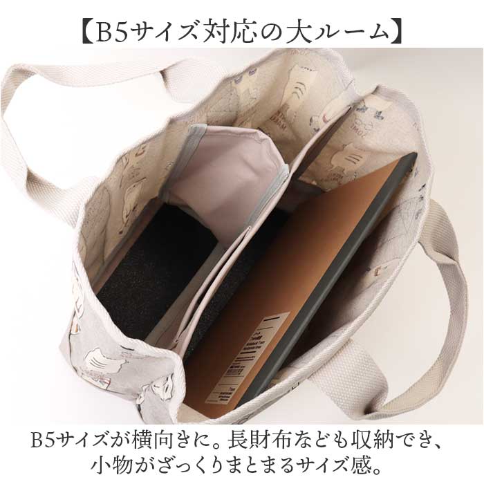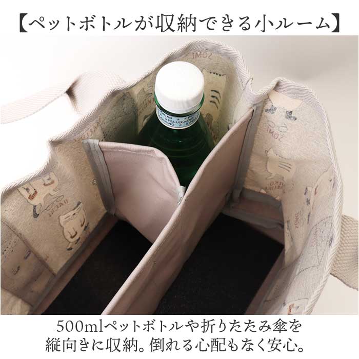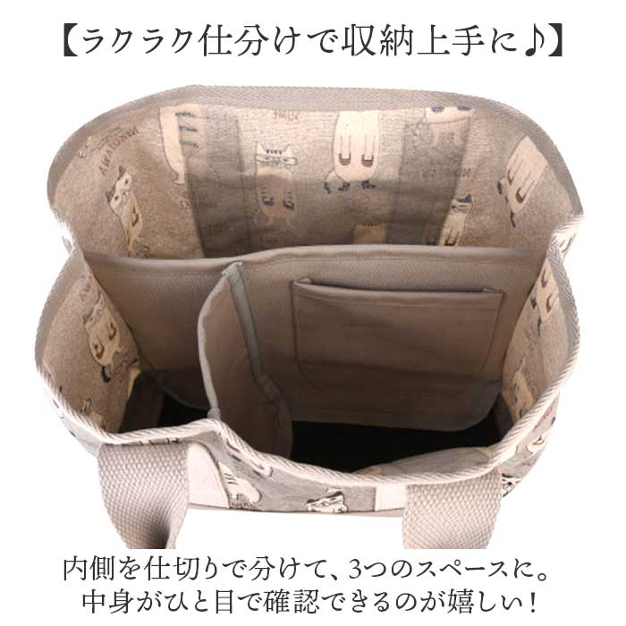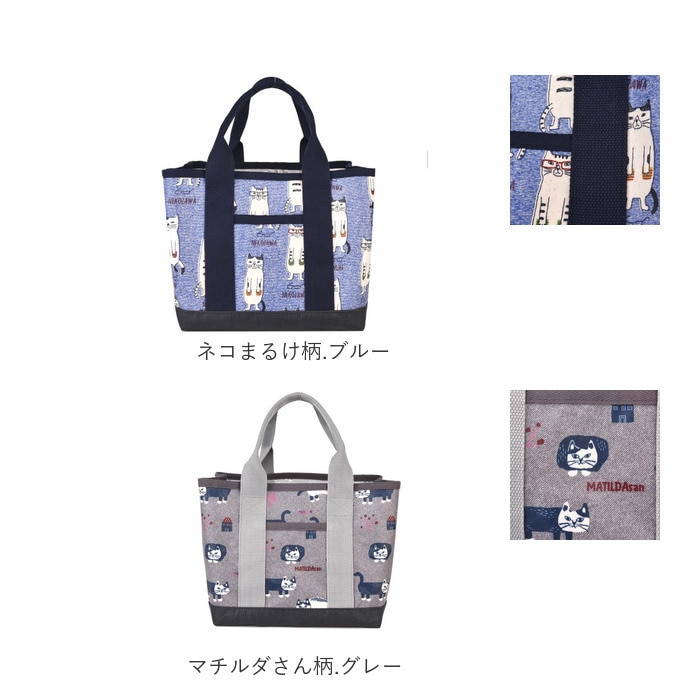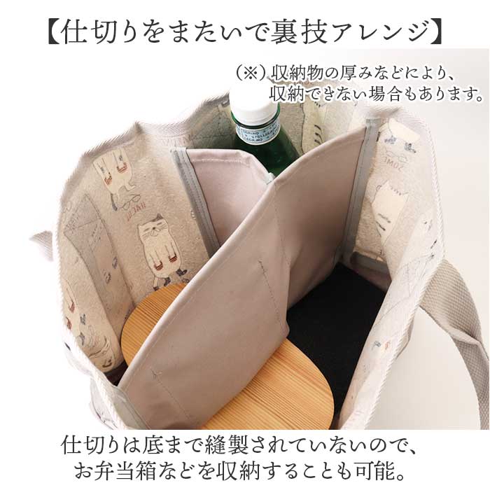 表側コーティング 仕切りトートバッグ Sサイズ【マチルダさん柄.グレー】