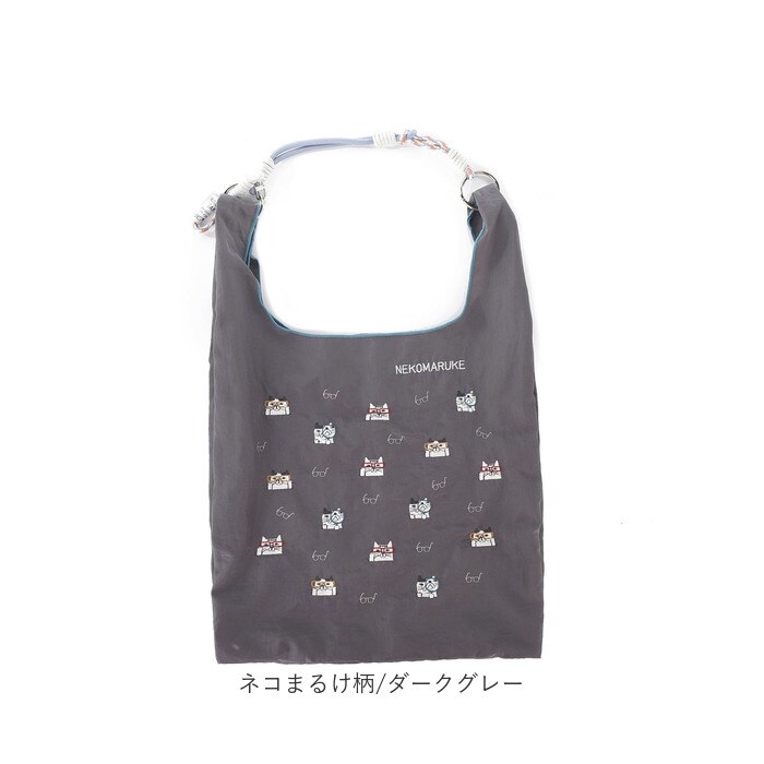 撥水加工 刺繍ワッシャー 2WAYサブバッグ【ネコまるけ柄/ダークグレー】