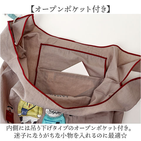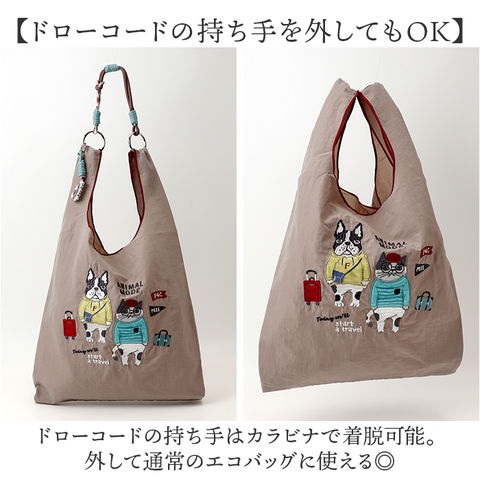 | 商品説明 | 【特徴的なオシャレなデザインのバッグ】フロントの刺繍と持ち手のコードがユニークでおしゃれなワッシャーバッグ。【フロントは刺繍デザイン】動物モチーフ中心の刺繍入り。個性的なバッグでお出かけ、お買い物も楽しめるアイテム。【ちょっとしたお買い物に便利】レジ袋と同じくらいのサイズ感で、コンビニやスーパーでのちょっとしたお買い物に丁度いい◎【オープンポケット付き】内側には吊り下げタイプのオープンポケット付き。迷子になりがちな小物を入れるのに最適☆【ユニークなドローコードの持ち手】ドローコード風の紐を持ち手に採用!ユニークさだけでなく耐久性もバッチリ。【ドローコードの持ち手を外してもOK】ドローコードの持ち手はカラビナで着脱可能。外して通常のエコバッグに使える◎【肩掛けにも対応】ドローコードの持ち手を付けた状態で肩掛けも可能!シーンに合わせて持ち方選べる。【軽くて丈夫なナイロン】バッグの生地はナイロン素材。軽くて丈夫なのでデイリーユースにピッタリ☆【サブバッグにも】しわになりにくいからコンパクトに折り畳んでメインのカバンに忍ばせてもOK。【嬉しいはっ水機能】ちょっとした雨を弾くはっ水機能付き。お手入れが楽ちんなのもGOOD。【パラコードのストラップ付き】デザインの世界観を高めるパラコードのストラップ付き。フックで取り外しが可能。【ポケット仕様】[メインルーム]・・・オープンポケット×1 |