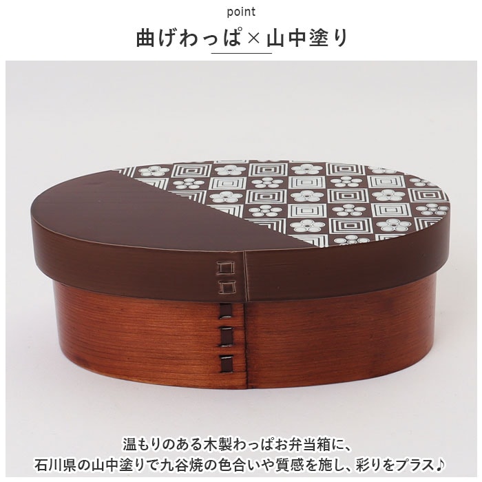 | 商品説明 | いつものランチをもっと美味しく♪おしゃれな和柄デザインの「Kutan 曲げわっぱ弁当箱 S」が登場。【曲げわっぱ×山中塗り】温もりのある木製わっぱお弁当箱に、石川県の山中塗りで九谷焼の色合いや質感を施し、彩りをプラス♪【美味しさをキープ】天然木の素地を使用しており、木の調湿作用でご飯がベチャつかない!【毎日使いに最適】表面に塗装を施しているから、汚れや傷がつきにくい!誰でも気軽に使えるのが嬉しいポイント◎(※カラーにより塗装の種類が異なります。)【コンパクトな400mlサイズ】少食の方やお子さまにぴったりなサイズ感。【T字仕切り付き】おかずが片寄りにくい仕切り付き。盛り付けもラクラク。【ゴムバンドが付属】お弁当箱をしっかりホールドできて、持ち運び時も安心。【お気に入りをチョイス】お好みで選べるデザイン&家族色揃いで持てるカラーをラインナップ。 |
