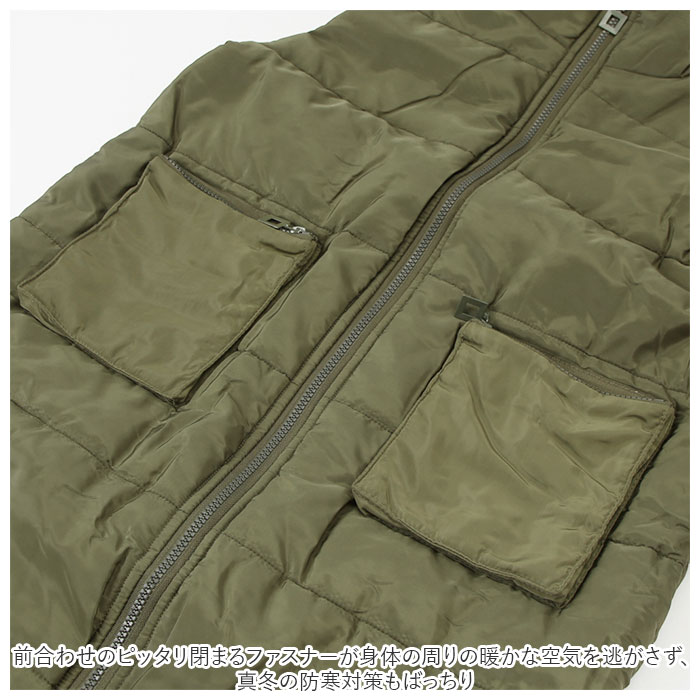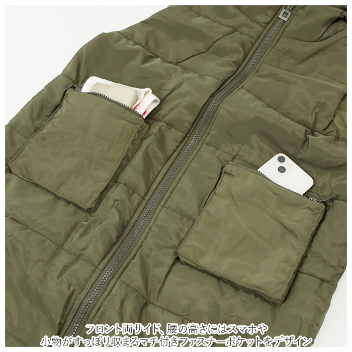 | 商品説明 | スタイルをすっきり魅せる縦長シルエット♪シンプルに着こなせる「レディース・ロングベスト」ベストの身頃部分はもちろん、フードの内側にもたっぷりと中綿を充填し、サッと羽織るだけでポカポカの暖かさ。前合わせのピッタリ閉まるファスナーが身体の周りの暖かな空気を逃がさず、真冬の防寒対策もばっちり。膝が見え隠れするほどの長め丈感なので、腰回りやヒップをふんわりと包み込んで体型カバーにも効果的。フロント両サイド、腰の高さにはスマホや小物がすっぽり収まるマチ付きファスナーポケットをデザイン。ちょっとそこまでのお出掛けなら、手ぶらでもOK!袖のないベストスタイルにすることで、ボリューム感を程よくセーブ。着ぶくれしがちな肌寒い季節でもオシャレなレイヤードが自在。ボトムスにタイトジーンズやワンピースを合わせて、アクティブかつマニッシュなコーデを手軽に実現。 |