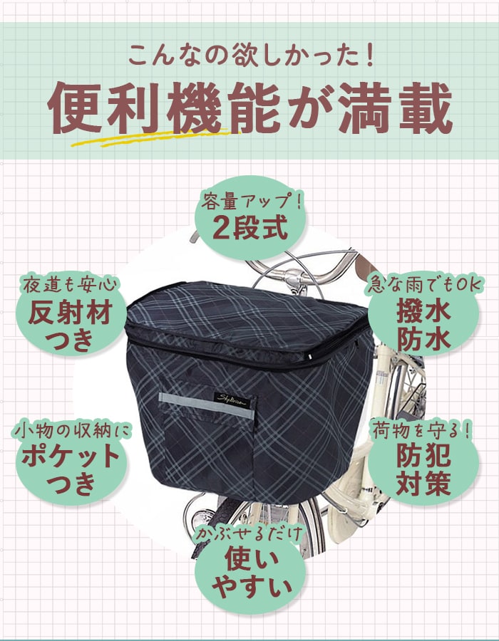 Keia+ 2段式 前かごカバー KW-25F【256F.ネイビーチェック】
