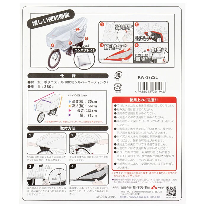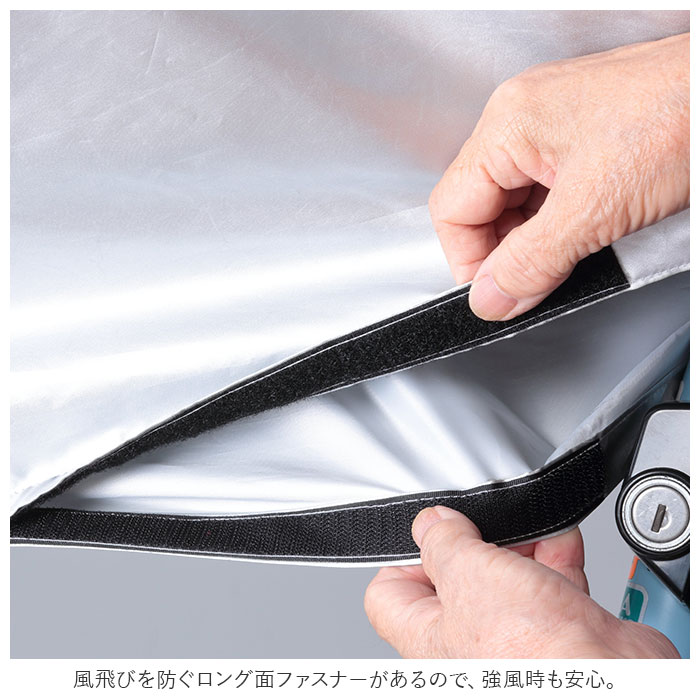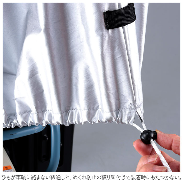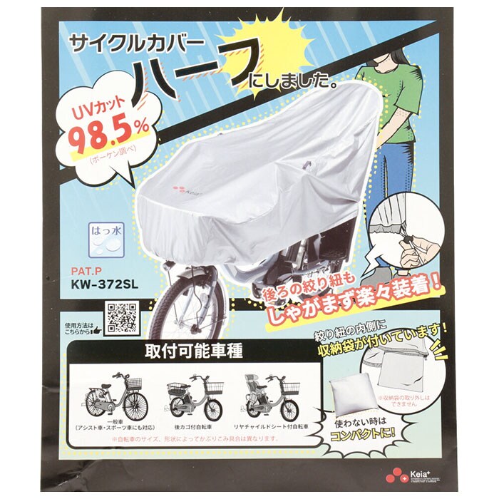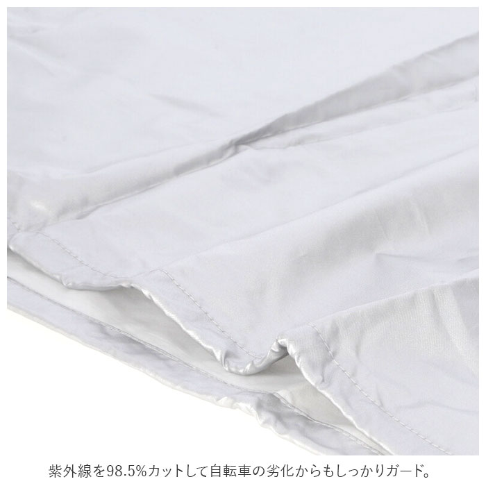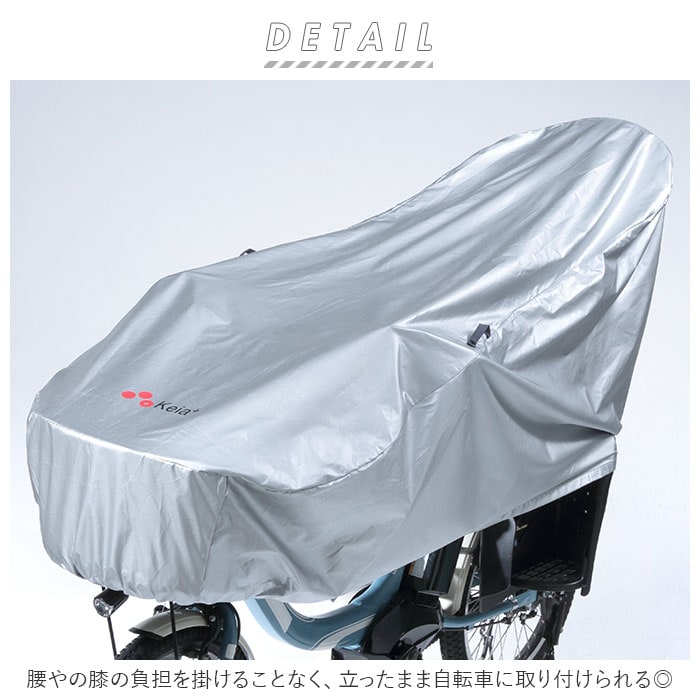 商品説明しゃがまずにラクラク装着♪サイクルカバーが登場。腰やの膝の負担を掛けることなく、立ったまま自転車に取り付けられる◎ハーフサイズでもカゴ・サドル、ハンドルをしっかりカバー。紫外線を98.5%カットして自転車の劣化からもしっかりガード。ピタッと固定する前方ゴム入りなので水が入り込む心配なし。風飛びを防ぐロング面ファスナーがあるので、強風時も安心。ひもが車輪に絡まない紐通しと、めくれ防止の絞り紐付きで装着時にもたつかない。干すのに便利な乾燥ベルト付きで干すのも楽チン♪リアチャイルドシート付き電動アシスト車・シティ車まで、幅広い自転車に対応。(※自転車のサイズ、形状によって被りこみ具合は異なります。)絞り袋の内側に収納袋が縫い付けられているので、袋を紛失する心配がなく、コンパクトに持ち運びが可能♪