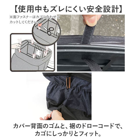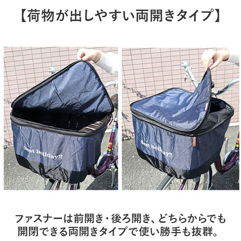 | 商品説明 | 【便利でおしゃれな2点セット!】自転車通勤や、お子様の送り迎えに大活躍!2段式前カゴカバーとハンドルカバーの2点セット。《2段式前カゴカバー》【2段式に容量アップ!】荷物が少ないときはすっきり!多いときにはたっぷり収納!荷物の量に合わせてファスナーを開閉【いろいろな大きのカゴに対応】普通サイズの自転車はもちろん、電動アシスト車などの後カゴにも対応するサイズ。(※1)カゴ対応サイズ・・・横幅:約40cm×奥行:約32.5cm×高さ:約30cmの前カゴに装着可能。細かいメッシュタイプのカゴには取り付けできません。【使用中もズレにくい安全設計】カバー背面のゴムと、裾のドローコードで、カゴにしっかりとフィット。【お手入れのしやすさも◎】スタイリッシュなデニム調生地には、水滴をしっかり弾く厚手のはっ水加工生地を採用。【防犯面でも安心】カバーの開口部はダブルファスナーでしっかりと閉じることができ、ひったくり防止にも役立つ!(※2)ひったくり抑止には効果がありますが、防犯上絶対ではありません。貴重品の管理はお客様ご自身で行ってください。【荷物が出しやすい両開きタイプ】ファスナーは前開き・後ろ開き、どちらからでも開閉できる両開きタイプで使い勝手も抜群。【スタイリッシュなデニム調】フロントの「Best Holiday!!」のロゴがデザインのワンポイント!自転車でのお出掛けが快適《ハンドルカバー》【あったかインナーボア仕上げ】カバーの内側は、アルミ蒸着仕様のインナーボア付き。指先の冷えが気になる季節に大活躍!【着脱もラクラク】インナーはスナップボタンで着脱可能。紫外線の気になる季節は日焼け防止対策としても◎【手元が見やすい透明窓付き】電動アシスト車のバッテリー残量や変速レバーがひと目で確認できる透明窓付き。【反射材付きで視認性UP】カバーの縁には反射材が付いて雨の日や暗い夜道も安全に走行可能。【雨の日も快適】撥水・防水加工を施した生地を使用しているので雨の日も手が濡れず、ストレスフリー。 |
