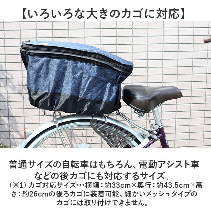 | サイズ | 【2段式後カゴカバー】 ・後カゴカバーサイズ [縦(高さ)]約27cm~約42cm/[横幅]約34cm/[奥行]約44.5cm ※ファスナーを開放することで、高さが伸長します。 ・適応カゴサイズ [縦(高さ)]約26cm/[横幅]約33cm/[奥行]43.5cm 【オールシーズンハンドルカバーデニム】 [縦]約23cm/[横]約39cm ※サイズはメーカー公表サイズです。実際の商品とは多少の誤差が生じる場合がございます。あらかじめご了承ください。 |