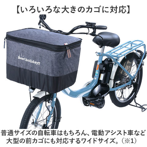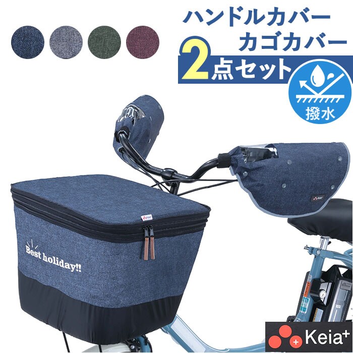 | 商品説明 | 【便利でおしゃれな2点セット!】自転車通勤や、お子様の送り迎えに大活躍!2段式前カゴカバーとハンドルカバーの2点セット。《2段式前カゴカバー》【2段式に容量アップ!】荷物が少ないときはすっきり!多いときにはたっぷり収納!荷物の量に合わせてファスナーを開閉【いろいろな大きのカゴに対応】普通サイズの自転車はもちろん、電動アシスト車など、大型の前カゴにも対応するワイドサイズ。(※1)カゴ対応サイズ・・・横幅:約44~48cm×奥行:約29~33cm×高さ:約23~30cmの前カゴに装着可能。細かいメッシュタイプのカゴには取り付けできません。【使用中もズレにくい安全設計】カバー背面のゴムと、裾のドローコードで、カゴにしっかりとフィット。【お手入れのしやすさも◎】スタイリッシュなデニム調生地には、水滴をしっかり弾く厚手のはっ水加工生地を採用。【防犯面でも安心】カバーの開口部はダブルファスナーでしっかりと閉じることができ、ひったくり防止にも役立つ!(※2)ひったくり抑止には効果がありますが、防犯上絶対ではありません。貴重品の管理はお客様ご自身で行ってください。【荷物が出しやすい両開きタイプ】ファスナーは前開き・後ろ開き、どちらからでも開閉できる両開きタイプで使い勝手も抜群。【スタイリッシュなデニム調】フロントの「Best Holiday!!」のロゴがデザインのワンポイント!自転車でのお出掛けが快適《ハンドルカバー》【あったかインナーボア仕上げ】カバーの内側は、アルミ蒸着仕様のインナーボア付き。指先の冷えが気になる季節に大活躍!【着脱もラクラク】インナーはスナップボタンで着脱可能。紫外線の気になる季節は日焼け防止対策としても◎【手元が見やすい透明窓付き】電動アシスト車のバッテリー残量や変速レバーがひと目で確認できる透明窓付き。【反射材付きで視認性UP】カバーの縁には反射材が付いて雨の日や暗い夜道も安全に走行可能。 |