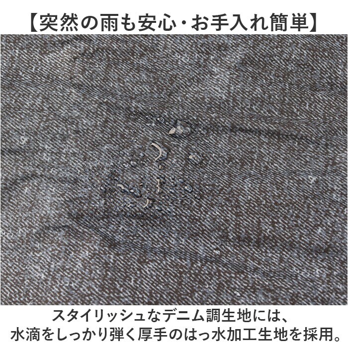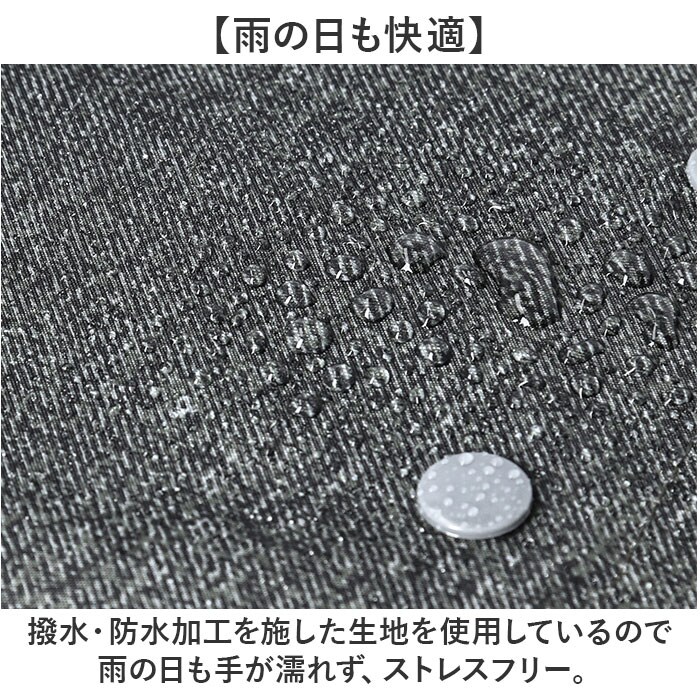 | 注意点 | 【雨の日も快適】撥水・防水加工を施した生地を使用しているので雨の日も手が濡れず、ストレスフリー。【スタイリッシュなデニム調】シンプルなデザインと落ち着きのあるカラー。男女問わず使いやすいのも嬉しいポイント。お取り扱いの際は、商品やパッケージなどに記載されている品質表示、アテンションタグ、ご使用上の注意事項などを必ずご確認下さい。本来の目的以外にはご使用にならないで下さい。カメラやモニターの性質により、画像と実物の色の違いがある場合がございますのでご理解願います。 |
