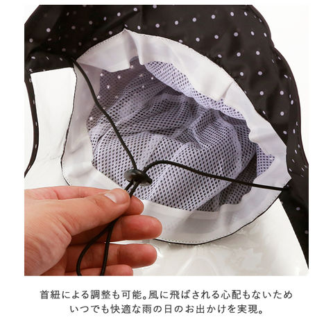 | 商品説明 | 蒸れないメッシュ付き&風飛び防止アゴヒモ付で雨の日のお出かけに安心なレインハット。透明大型のひさし付きで前が見えやすく、安心して自転車の運転できる!生地にはっ水&防水加工が施されているので、汚れもつきにくく、急に雨に降られた時にも対応できる。雨風の日のお出かけの強い味方!ブラックホワイトドット、ピンクハート、ワインチェックなど豊富なカラーバリエーション。さらに同シリーズのレインポンチョ(kw72)もお揃いでお求めいただけます。(※レインポンチョは、ブラックドットピンクハートブルードットの3カラーのみのお取り扱いです)首紐による調整も可能。風に飛ばされる心配もないため、いつでも快適な雨の日のお出かけを実現。 |