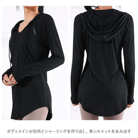 | 商品説明 | ゆるっと着て体型カバー。フィットネスやヨガに最適なヨガ ウェア トップス 長袖が登場!伸縮・弾力性に優れたストレッチ生地が、心地よくからだにフィット!ボディラインが自然とシャーリングを作り出し、美シルエットを生み出す。ヒップが隠れる長めの着丈と長袖で気になる体型をカバー。深すぎないVネックラインとフードが小顔&デコルテ美人に。右サイドには便利なポケット付き。柔らかな肌ざわりと、締め付けない快適な着心地は、おうちやジムで過ごす時間をより上質なものに♪ |