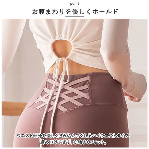 | 商品説明 | ヨガやジムでのトレーニングで活躍する、レギンスパンツが登場。【レギンスタイプ】足首まで覆うレギンスタイプのヨガウェア。【お腹まわりを優しくホールド】ウエスト部分を優しく包み込んでくれるハイウエストタイプ。締めつけすぎず、心地よくフィット。【ヒップラインもすっきり】ストレッチ性に優れた素材を使用。ヒップラインもキュッと押し上げ、すっきりキレイ魅せ♪【後ろ姿もぬかりなし】バックスタイルも美しく♪腰部分のクロスリボンデザインがおしゃれ。【サラッと快適】汗をかいてもムレにくいのが嬉しい!【使い勝手ばっちり】どんなトップスとも合わせやすいカラーバリエーション◎ |