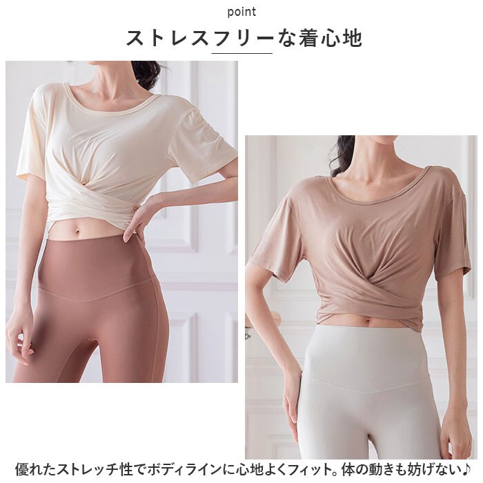 | 商品説明 | シンプルで着こなしやすい!ヨガなどのフィットネスシーンで活躍する、半袖トップスが新登場。【着心地軽やか】サラッとした薄手の生地感で、汗をかいてもベタつきにくくムレにくい!【ストレスフリーな着心地】優れたストレッチ性でボディラインに心地よくフィット。体の動きも妨げない♪【クルーネックデザイン】首元が詰まりすぎないクルーネックタイプ。締めつけ感がなく、トレーニングに集中できるのが嬉しい!【アクセントをプラス】フロントは裾がクロスしており、お腹をチラ見せ。バックを結べば、後ろ姿もキュート♪【お手入れラクラク】サッと洗濯機洗いできて、乾きも早い!毎日のトレーニングのお供にぴったり。 |