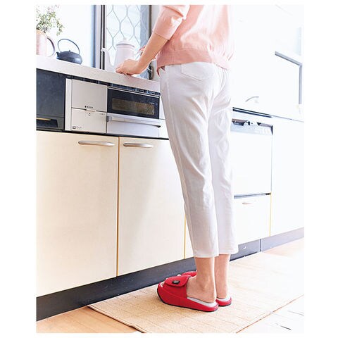 | 商品説明 | 傾斜ソールがポイント!履くだけでお尻がキュッとする「ゆるみ対策スリッパ キュキュッパ(約22.5~24.5cm)」が新登場♪かかと部分が低くなったソールが、ふくらはぎからお尻までを刺激!また内側傾斜により、骨盤周りの筋肉や気になる内ももの内転筋にも効果が!足指の部分には突起があり、指でつかむことにより力が入るのもポイント!足の甲を覆うベルトは面ファスナーで調節が可能。幅広4Eまで対応したジャストな履き心地が嬉しい!柔らかな肌ざわりとビビットなカラーが、気持ちまでアップ!毎日の生活の中で気軽にトレーニングが出来ちゃうとっておきのアイテム♪ |
