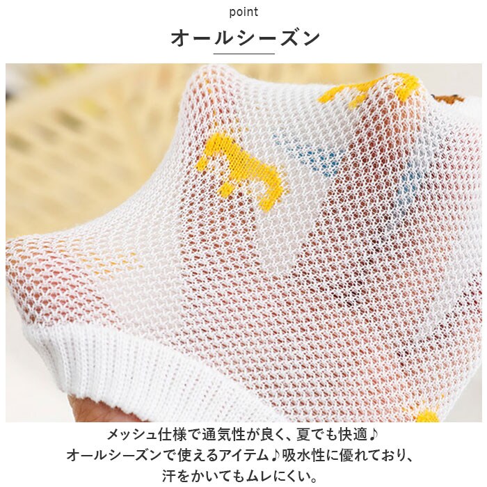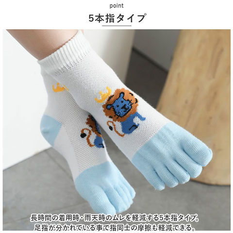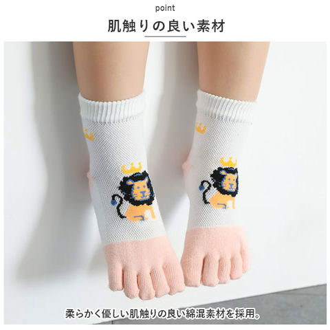 | 商品説明 | キッズが喜ぶ可愛いパステルカラーの靴下♪【5本指タイプ】長時間の着用時・雨天時のムレを軽減する5本指タイプ。足指が分かれている事で指を自由に動かせると同時に指同士の摩擦も軽減できる。【肌触りの良い素材】柔らかく優しい肌触りの良い綿混素材を採用。【オールシーズン】メッシュ仕様で通気性が良く、夏でも快適♪オールシーズンで使えるアイテム♪吸水性に優れており、汗をかいてもムレにくい。【幅広いサイズ展開】・3~6歳サイズから7~12歳までの2サイズからチョイス可能♪姉妹や兄弟お揃いで使えるのもポイント。 |