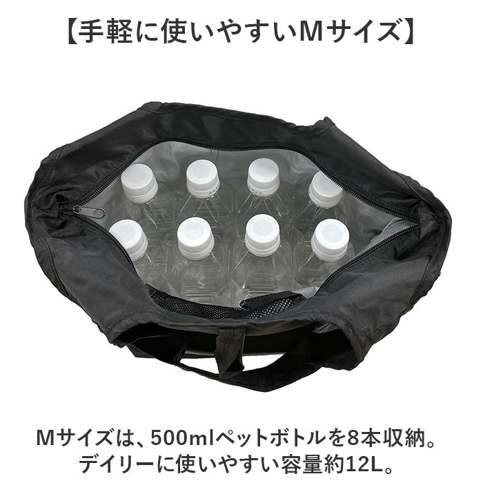 | 商品説明 | 【携帯しやすく機能的な頼れる相棒】いつものお買い物を快適にサポート!持ち運びもスマートな「tone できるマルシェバッグ」【お好みで選べる2サイズをご用意】用途に合わせてチョイスOK。サイズ以外の機能性は同じで、お買い物の味方☆【手軽に使いやすいMサイズ】Mサイズは、500mlペットボトルを8本収納。デイリーに使いやすい容量約12L。【まとめ買いにも役立つLサイズ】Lサイズは、2Lペットボトルを6本収納。沢山お買い物する時にも最適な容量約20L。【肩掛けできてストレスフリー】サッと肩に掛けられる長さのハンドル。荷物が重くなっても大丈夫◎【開閉スムーズ、安心のファスナー式】ガバっと開いて取り出しやすく、ファスナーを閉じれば中身の飛び出しをガード。【トレー等も収納できるマチ広設計】食品トレーやお弁当箱も、向きを変えずに収まる!安定した状態で持ち運び可能。【保冷保温効果で1年中大活躍】温度変化を抑える、内側アルミコーティング仕様。冷たいものも温かいものも安心。【保冷材を入れて、保冷効果アップ】メッシュポケットには、保冷剤をIN。バッグのファスナーを閉めれば、冷気を逃さない!【コンパクトに持ち運べて便利】使わない時は折りたたみ、ゴムベルトでひとまとめ。急に荷物が増えても大丈夫♪【手洗いできてお手入れラクラク】汚れが気になったら、自宅で手洗い。いつも清潔をキープできるのが嬉しい!【使う人を選ばないシンプルデザイン】性別や年代問わず持ちやすい、無地のブラックカラー。家族でシェアもできる万能アイテム。【ポケット仕様】内側:メッシュポケット×1 |
