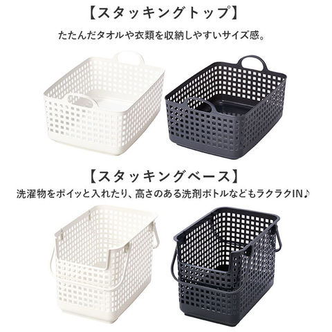 | 商品説明 | すっきり整理整頓&シーンに応じて使い分けできるバスケット「like-it スタッキングセット」が登場。【簡単スタッキング】スタッキングベースのハンドルを垂直に立てて、押し込むと支えに。その上にスタッキングトップを積み重ねるだけでOK。2本のハンドルにかかる荷重はMAX5kgまで。【使いやすさばっちり】柔軟性のある素材で作られたバスケットは、中に入れるものを傷つけにくい!単体でもセットでも使いやすいスクエアタイプ。【しっかり入るワイド設計】中身がひと目で確認できて、サッと出し入れできるオープンタイプ。通気性が良く大きめのつくりなので、シーンを選ばずマルチに活躍。【スタッキングトップ】たたんだタオルや衣類を収納しやすいサイズ感。【スタッキングベース】洗濯物をポイッと入れたり、高さのある洗剤ボトルなどもラクラクIN♪【便利なハンドル付き】どちらも両サイドにハンドルが付いているから、持ち運びもラクラク。【環境にも配慮】本体に、サトウキビ由来のバイオマスプラスチックを約30%使用。環境にもやさしいアイテム!安心の日本製。【選べるカラー】空間に馴染みやすいカラーをラインナップ。装飾のないシンプルなデザイン。 |