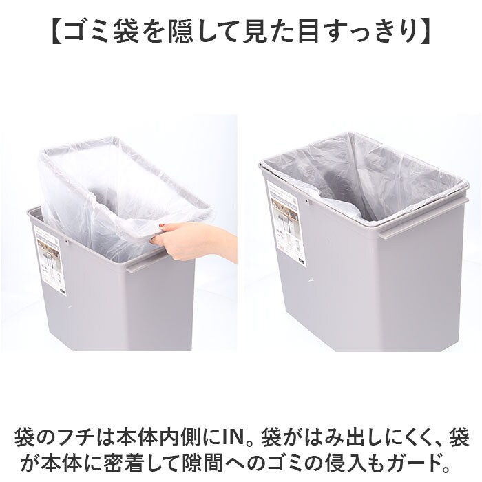 | 商品説明 | 【様々なシーンに溶け込むゴミ箱】使いやすく空間にマッチする日本製アイテム。「フロントオープントラッシュビン」17スリム。【棚下やデスク下にもぴったり】サッと開閉できるフロントオープンタイプ。上部のスペースを気にせず、空間を有効活用。【開口状態をキープできて便利】フタ部分を内側に引っ掛けて、開けたままの状態にすることも可能◎【場所を選ばず分別もラクラク】スリムな横幅で省スペース。並べたり、上に他タイプのダストボックスを積み重ねて分別も。(※)当店別ページにて、タイプの異なるダストボックスを販売中です。【ゴミ袋を隠して見た目すっきり】袋のフチは本体内側にIN。袋がはみ出しにくく、袋が本体に密着して隙間へのゴミの侵入もガード。【手軽に使える容量約17Lサイズ】スペースの限られた場所にも、設置しやすいサイズ感。【お手入れしやすく衛生的】パーツが少なく、隅々までお手入れ可能。いつも清潔に保てるのが嬉しい!【生活感が出にくくスタイリッシュ】インテリアの邪魔をしない♪生活感を抑えたマットなカラーリング。オフィス用としても重宝。 |