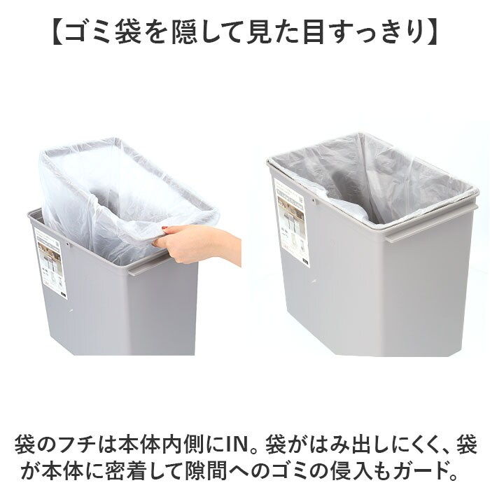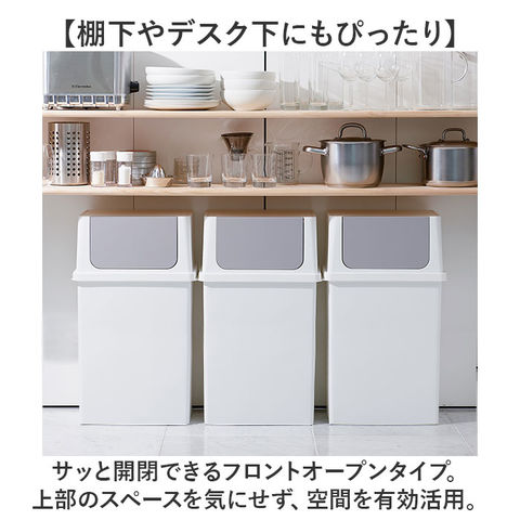 | 商品説明 | 【様々なシーンに溶け込むゴミ箱】使いやすく空間にマッチする日本製アイテム。「フロントオープントラッシュビン」25ワイド。【棚下やデスク下にもぴったり】サッと開閉できるフロントオープンタイプ。上部のスペースを気にせず、空間を有効活用。【ゴミを捨てやすいワイドタイプ】横幅のあるワイド仕様。大きく開いて、ゴミをサクッと捨てられるつくり。【気になるクローズ音を軽減】フタ裏に2つの小さなクッションを装備。閉じた時の音を感じにくく、ノンストレス。【並べたりスタッキングで分別】同じサイズを横に並べたり、別売りのダストボックスを積み重ねて分別もラクラク。(※)当店別ページにて、スタッキング可能なシールズ9.5 密閉ダストボックス(商品コード:lbd01)等を販売中です。【ゴミ袋を隠して見た目すっきり】袋のフチは本体内側にIN。袋がはみ出しにくく、袋が本体に密着して隙間へのゴミの侵入もガード。【使い勝手の良い容量約25Lサイズ】たっぷり入る大きさで、家族みんなで暮らすご自宅にも最適。【お手入れしやすく衛生的】パーツが少なく、隅々までお手入れ可能。いつも清潔に保てるのが嬉しい!【生活感が出にくくスタイリッシュ】インテリアの邪魔をしない♪生活感を抑えたマットなカラーリング。オフィス用としても重宝。 |