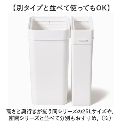 | 商品説明 | 【様々なシーンに溶け込むゴミ箱】使いやすさと美しさを兼ね備えた、日本製アイテム。「マルチパーパスビン」45Lサイズ。【ポイポイ捨てられてノンストレス】開口部を広めに設けた、フタなしダストボックス。ゴミが捨てやすいつくり。【ゴミ袋を見せないスマート設計】クリップホール構造で、袋の取り付けが簡単。袋が外側にはみ出さず、見た目がスッキリ◎【ダスト内で省スペースに2分別】袋止めを使って2分別まで対応。内部を上手く活用でき、スペースの限られた空間にも最適。【別タイプと並べて使ってもOK】高さと奥行きが揃う同シリーズの25Lサイズや、密閉シリーズと並べて分別もおすすめ。(※)当店別ページにて販売中です。商品コード→25Lサイズ:lbd25/密閉シリーズ25L:lbd02、45L:lbd03)【生活感が出にくくスタイリッシュ】インテリアの邪魔をしない♪生活感を抑えたマットなカラーリング。オフィス用としても重宝。 |