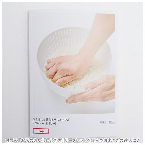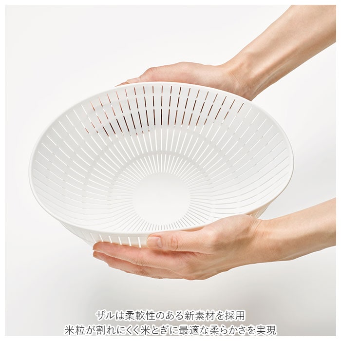 | 素材 | 【ザル】ポリプロピレン、熱可塑性エラストマー 【ボウル】ポリプロピレン 【付属品】お米のおいしいとぎ方リーフレット |
