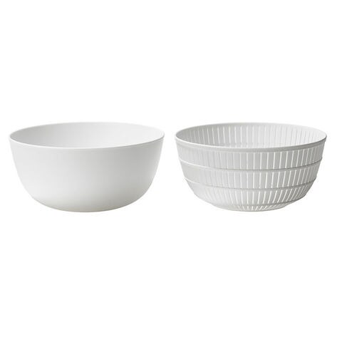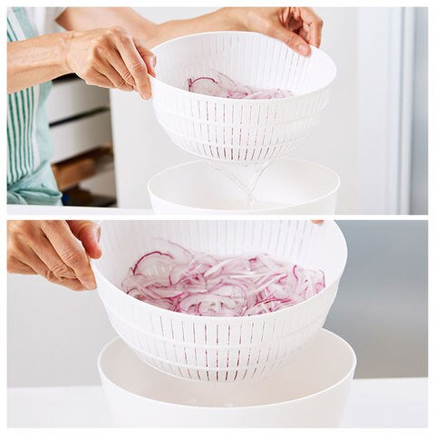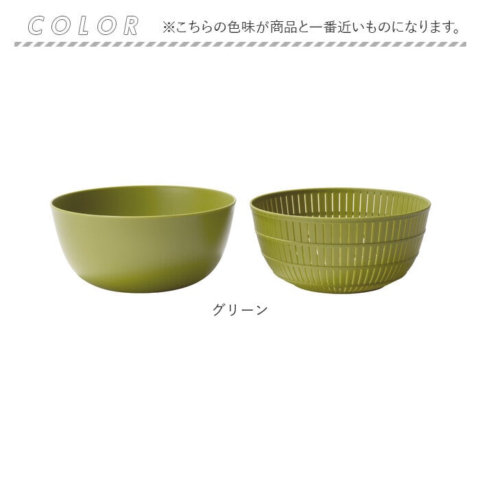 | サイズ | ・ザル [縦]約10cm/[上部直径]約22cm/[底部直径]約11cm ・ボウル [縦]約11cm/[上部直径]約23cm/[底部直径]約12cm ※サイズは当店計測の実寸サイズです。実際の商品ならびにメーカー表記サイズとは多少の誤差が生じる場合がございます。あらかじめご了承ください。 |