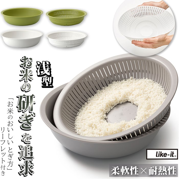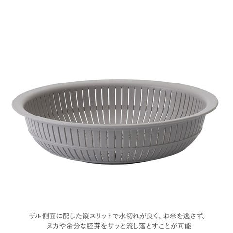 | 商品説明 | お米をふっくらみずみずしく炊き上げるために、こだわりが詰まったザルとボウルのセットから「浅型」が登場。毎日のお米を美味しく♪お米の「とぎ方」を追求。ザルは柔軟性のある新素材を採用。米粒が割れにくく米とぎに最適な柔らかさを実現。ザル側面に配した縦スリットで水切れが良く、お米を逃さず、ヌカや余分な胚芽をサッと流し落とすことが可能。耐熱性もあるので、お米を研ぐだけでなく調理の下ごしらえにも活躍する万能アイテム♪浅型のザルとボウルはサラダや麺類の水切り、野菜の塩もみや湯切り、盛り付けなどにも最適☆米とぎはもちろん、様々な用途に使えるザルとボウルなので洗い物削減にも◎ザルとボウルは綺麗に重ねられるので、スッキリ収納出来るのも嬉しいポイント。付属の「お米のおいしいとぎ方」リーフレットを読んでお米とぎの達人に♪ |