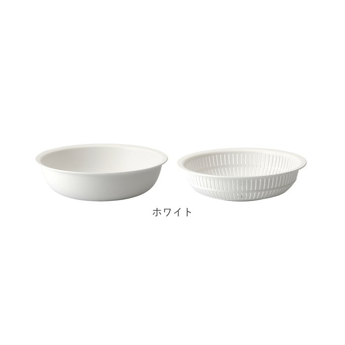 米とぎにも使えるザルとボウル 浅型【ホワイト】