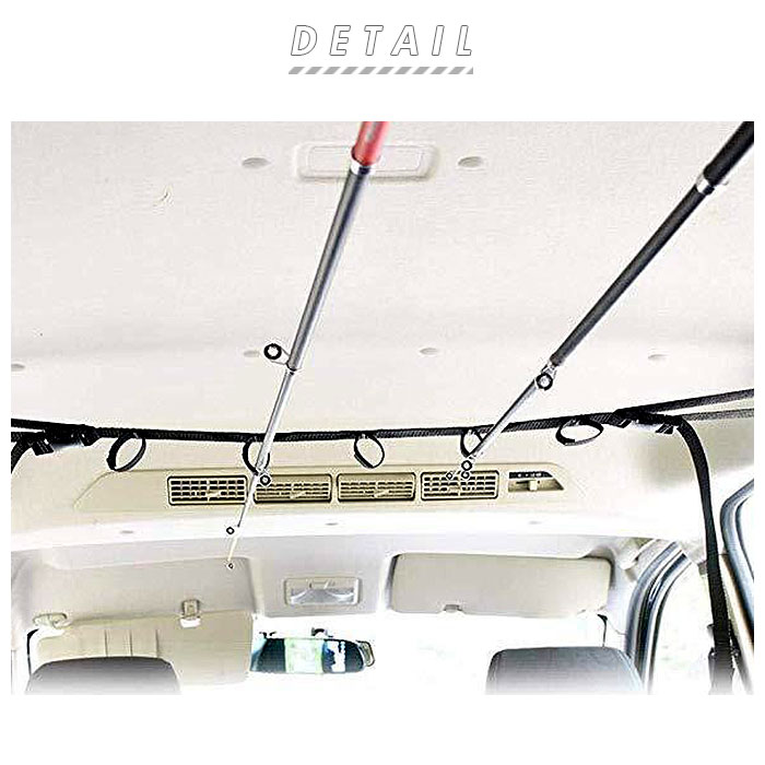 | 商品説明 | 釣り竿を車に積む際に活躍するロッドホルダー(2本セット)が発売。車で釣りに行きたいけれど、釣り竿の収納スペースがない…そんな方におすすめ!車のアシストグリップに取り付けることで、天井のデッドスペースに釣り竿を収納できる♪ベルトの長さは調節可能で、様々な車種に対応。ベルト1本につき最大5本の釣り竿を収納できるので、家族や友人との釣りにも最適。使わない時はコンパクトにまとめられて便利。 |