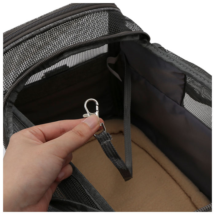 | 商品説明 | 大切なペットとの旅行やお出掛けに大活躍!人気のペットグッズに、折りたたみペットキャリーが新登場!バッグの全面に通気性のよい頑丈なメッシュ窓を設けた快適仕様♪暑さが気になる季節でも安心で、バッグの中のペット様子がつぶさに見てとれるのも飼い主さんにとって嬉しいポイント!バッグの天井部と両側面に、ペットが出入りするためのファスナー開口部を合計3ヶ所に配置し、ワンちゃん・ネコちゃんの出入りがとってもスムーズ。バッグの内側にはリード金具を繋ぐことのできるDカン付きなので、ペットの急な飛び出しを防いでくれる安全仕様。ふかふかの中敷きマットは、マジックテープ式で簡単に取り外しが可能。底板を外せば、中敷きマットのみでお洗濯ができて、いつでも清潔。バッグの前面には、ウェットティッシュやマナーウェア・おやつを入れておくのに便利なポケット、さらに両サイドにもメッシュポケット付き。ワンちゃんとネコちゃんが鼻を寄せる、LDLC(LoveDog、LoveCat)のロゴがデザインのワンポイント!パッド付キャリーハンドルでラクラク手持ちにできるほか、付属のショルダーベルトで肩掛けにもできる便利な2WAY仕様。車での移動では、背面のバックル付きベルトループでシートベルトに固定。旅行時にはスーツケースのハンドルにキャリーオンしてもOK。両サイドのファスナーを開放すれば簡単に折りたたみができ、使用しないときにはコンパクトに収納可能。外出中にストレスを受けやすいワンちゃん・ネコちゃんに優しい、ゆったりペットキャリー。動物病院への通院やお出掛けに最適!(※小型犬やネコちゃん用のペットキャリーです。体重約8kgまでのペットに対応。) |