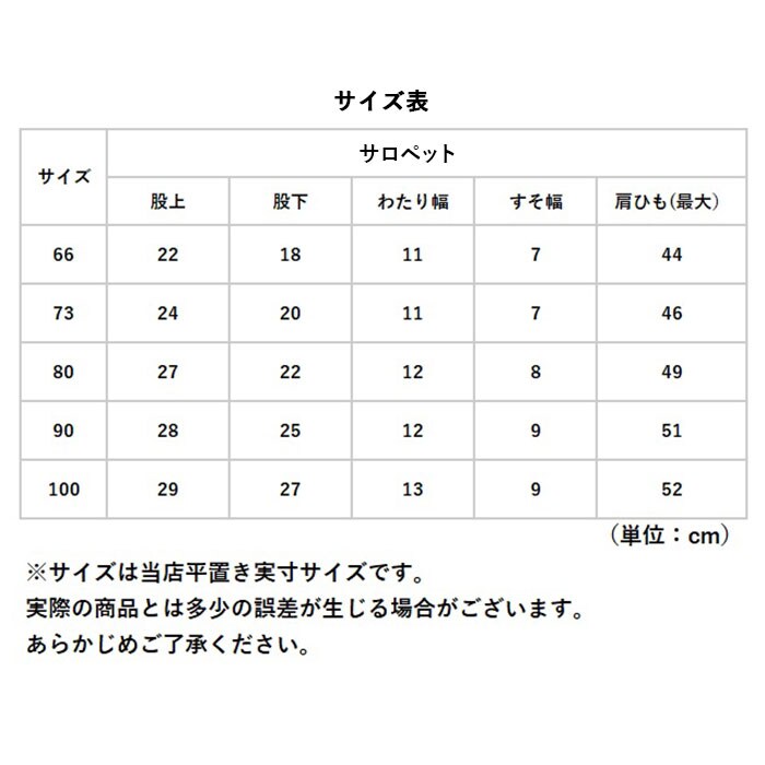 | サイズ | [キッズ] ・66cm ・73cm ・80cm ・90cm ・100cm ※サイズについて詳細は、商品画像の中にあるサイズ表をご覧くださいませ。 |