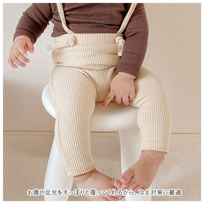 | 商品説明 | 活発なベビーちゃんにぴったり♪サロペット風レギンスが新登場。お腹や足元をすっぽりと覆ってくれるから、冷え対策に最適。肩紐を紐穴に通して結ぶだけのカンタン着脱!成長に合わせて長さ調節が可能。さらにストレートでもクロスでも、お好みに合わせて肩紐の通し方を変えられる◎赤ちゃんのお肌に優しい綿混紡素材。ストレッチ性があるから、動き回っても身体に優しくフィット。ユニセックスで使えるカラーバリエーション♪ |