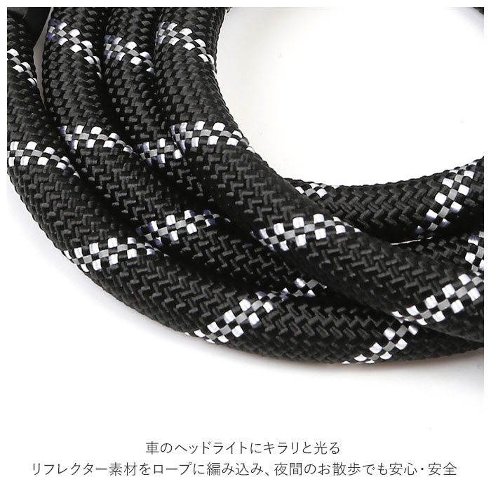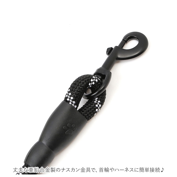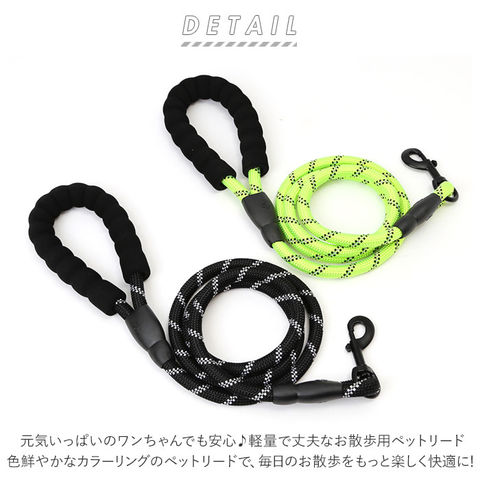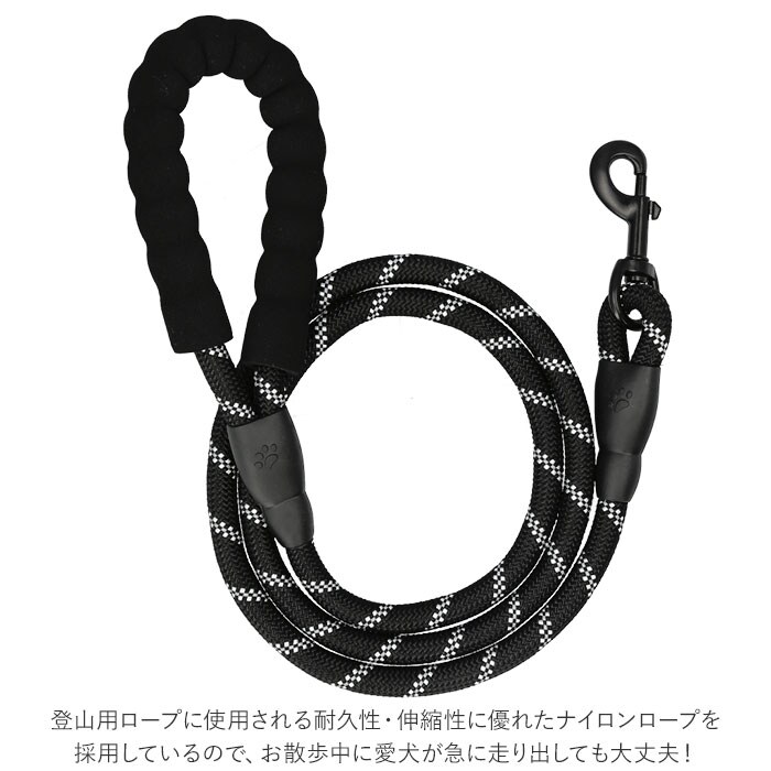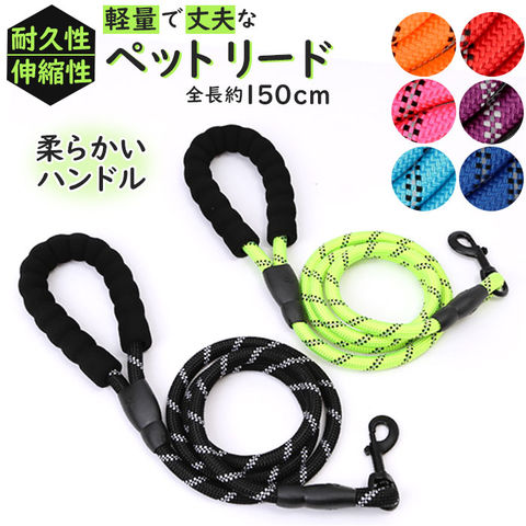 | 商品説明 | 元気いっぱいのワンちゃんでも安心♪軽量で丈夫なお散歩用ペットリード。登山用ロープに使用される耐久性・伸縮性に優れたナイロンロープを採用しているので、お散歩中に愛犬が急に走り出しても大丈夫!丈夫な亜鉛合金製のナスカン金具で、首輪やハーネスに簡単接続♪少し長め、全長約150cmのゆったりサイズで、お散歩大好き・活発な中型犬にオススメ!持ち手ハンドルはソフトなスポンジ素材で仕上げ、ワンちゃんがリードを強くひっぱっても手が痛くなりにくい優しい造り。車のヘッドライトにキラリと光る☆リフレクター素材をロープに編み込み、夜間のお散歩でも安心・安全。色鮮やかなカラーリングのペットリードで、毎日のお散歩をもっと楽しく快適に! |