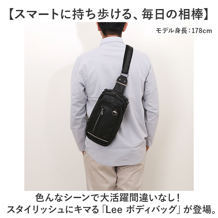 | 商品説明 | 【スマートに持ち歩ける、毎日の相棒】色んなシーンで大活躍間違いなし!スタイリッシュにキマる「Lee ボディバッグ」が登場。【Lee infinity】ジーンズブランドLEEから登場。世代や性別を問わず活躍するライン「infinity ||」シリーズ。【上品見えするレザー調素材】合成皮革のマットな質感が魅力。カジュアルすぎず大人に似合う上品な抜け感。【両手が空いて、移動もスムーズ】ショルダーの長さ調節OK。普段使いはもちろん、旅行やレジャーにもぴったり。【左右どちらでも!抜群のフィット感】ショルダーと本体をフックで接続。左右どちらの肩にも付け替えでき、身体にやさしくフィット。【サッと使えてストレスフリー】ダブルファスナーで左右どちらからも開閉可能。荷物の出し入れもスムーズで飛び出しも防止!【必要なものをひとまとめ】・B5ノートも縦にすっきり収納。スリムな見た目でも、しっかり大容量。【小物が迷子にならない設計】フロントの縦型ファスナーポケットなど、小物の整理もばっちり。サッと取り出せて快適!【軽くてムレにくい快適な背負い心地】背面にクッション&通気性のあるメッシュ素材を採用。長時間の使用も快適!【さりげない大人ロゴの存在感】フロントに立体的なLeeのロゴとDカン付きで、アクセントと実用性を両立。【気軽に使える、ベーシックカラー】休日コーデにも合わせやすい、落ち着いたカラー展開。毎日に寄り添う、カジュアルデザイン。 |