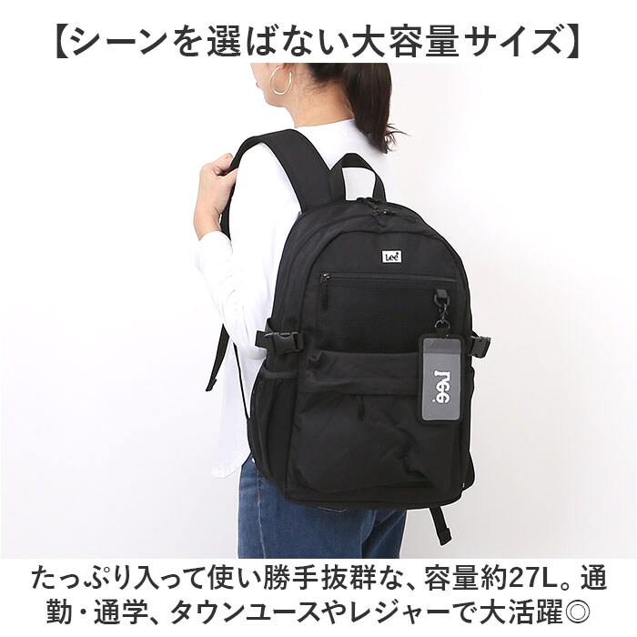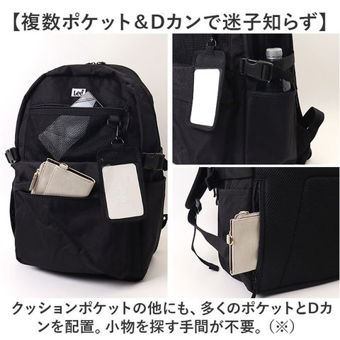 | 商品説明 | 【マルチに使えて頼れる相棒】収納力があり、荷物をすっきり整頓◎ヘビロテ確定の「Lee D.yeah リュック」。【シーンを選ばない大容量サイズ】たっぷり入って使い勝手抜群な、容量約27L。通勤・通学、タウンユースやレジャーで大活躍◎【ガバっと開いて仕分けもラクラク】A4対応、メイン&サブの2ルーム仕様。どちらも左右両側から大きく開き、出し入れスムーズ。【着替えもすっぽりメインルーム】マチを設け、衣類やポーチなどがひとまとめ。1泊程度の旅行にもおすすめ。【ノートPC対応のサブルーム】クッション入りのポケットを装備。ノートPCを衝撃から優しく守って、持ち運べるのが嬉しい◎【複数ポケット&Dカンで迷子知らず】クッションポケットの他にも、多くのポケットとDカンを配置。小物を探す手間が不要。(※)フロント、サイドポケット、ショルダーにDカンが装備されています。【荷物の量に合わせて横マチを調節】両サイドに、フィット感を調節できるベルト付き。フォルムもキープ。【厚手ショルダーで肩への負担を軽減】厚手で太めに設計されたショルダー。体にフィットする形状で、肩が疲れにくい!【夏場でもムレにくいメッシュ生地】背面とショルダーは通気性の良いメッシュ仕様。暑い季節の長時間移動も、サラッと快適。【アクティブに動くシーンでも安心】ズリ落ちを防ぐチェストベルト。ワンタッチで装着でき、位置は調整可能。【暗闇での視認性をアップ】ショルダーには、暗闇でヘッドライトの光を反射するリフレクター。夜間や視界の悪い日にも。【脱着式で便利なカードケース】ICカードなどをINできる、クリアカードケース。ナスカンで着脱もカンタン。【お揃いで使えるユニセックス仕様】落ち着きのあるベーシックカラーに、刺繍ロゴがアクセント!お揃いやシェアもおすすめ☆ |
