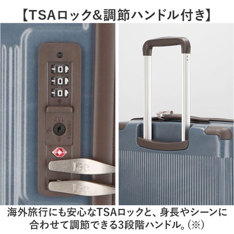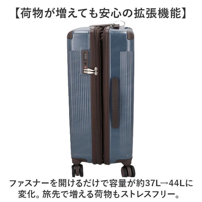 | 商品説明 | 【旅の相棒にぴったりな頼れる存在】旅行も出張もおまかせ。大人気ブランドLeeから、機能性抜群のキャリーケースが登場。【機内持ち込みOKサイズ】国内線100席以上の機内持ち込みOKサイズ。コンパクトでも収納力のある優秀サイズ!(※)航空会社によっては持込不可の場合がございます。【荷物が増えても安心の拡張機能】ファスナーを開けるだけで容量が約37L→44Lに変化。旅先で増える荷物もストレスフリー。【ストッパー付き4輪キャスター】電車の中でも安心な前輪ストッパー付き。静かでスムーズな移動を叶える安定感ある足元。【見た目も中身も抜かりない収納力】・2つのメイン収納に加えてメッシュポケット2つ。旅先での整理整頓にも心強い仕様。【TSAロック&調節ハンドル付き】海外旅行にも安心なTSAロックと、身長やシーンに合わせて調節できる3段階ハンドル。(※)TSAロックとは・・・アメリカ運輸保安庁(TSA)が認可したロックシステム。アメリカ以外の国際空港では荷物検査で開錠の際、鍵を壊す場合がございます。【自分だけの目印になるネーム付き】ひと目でわかるネームタグ付き。家族旅行やお子さまの使用にも安心な工夫!【Leeならではの大人カジュアル】ブランドロゴや引手、バンダナ柄の内装など、細部のディテールにまで宿る遊び心とこだわりが◎ |