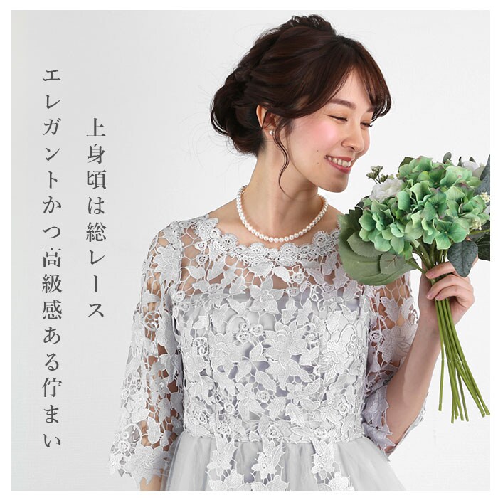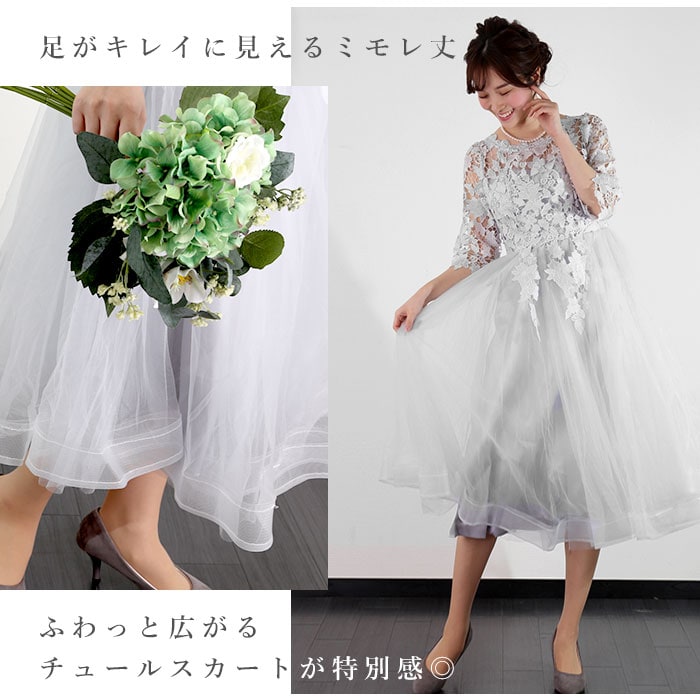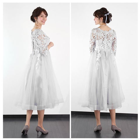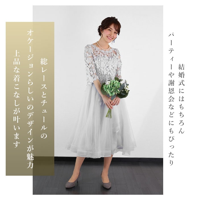 | 商品説明 | シックなのにゴージャス!細見え効果もうれしいミモレ丈のフォーマルワンピース♪上身頃は総レースでエレガントかつ高級感ある佇まい。チュールスカートはふわりと広がって女性らしいシルエットを演出★結婚式のお呼ばれや、パーティ、発表会などにもぴったり♪肩甲骨下まで大胆にあいた背中のレース部分がセクシーさも♪(※こちらの生地は伸縮性のない生地のため、通常よりワンサイズ大きめをおすすめします。) |