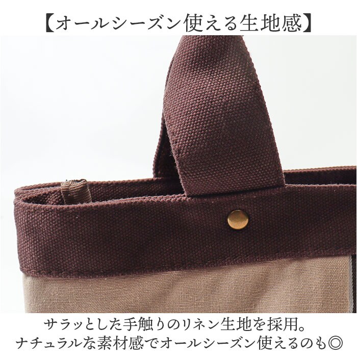 | 商品説明 | 【リネン生地に遊び心をプラス】リネン生地に刺?やパッチワークで遊び心をプラス。機能性のあるトートバッグが発売♪【オールシーズン使える生地感】サラッとした手触りのリネン生地を採用。ナチュラルな素材感でオールシーズン使えるのも◎【整頓できる仕分け機能】メインルームは3つのパーティションを搭載!小物をすっきり整頓して収納可能!【嬉しい機能性】内装ポケットやキーフックを搭載。コンパクトだけど使いやすい機能性アリ。【デイリー使いにピッタリ】長財布やペットボトル、折り畳み傘も収納OK!お出かけに使うアイテムがまとめて入るサイズ【ペットボトルは縦に収納】細めのパーティションルームはペットボトルや水筒を縦に収納可能。【かさばりがちな小物もIN】マチ幅を広く設け、コスメポーチや厚めの手帳などかさばる小物もしっかり収納。【遊び心があるシリーズ】刺し子風の刺?や切り継ぎのパッチワークデザイン♪どこかレトロで遊び心がある仕上がり☆【ポケット仕様】メインルーム・・・オープンポケット×1、ファスナーポケット×1、キーフック×1 |