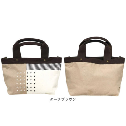 パッチワーク刺し子風トートバッグ【ダークブラウン】