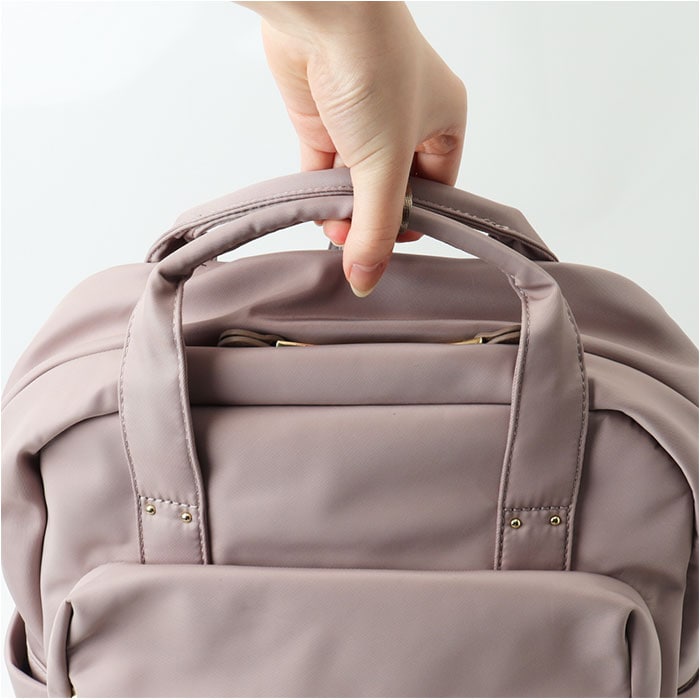 | 商品説明 | 【色んなシーンで頼れるアイテム】お出かけや旅行、出張にも!「Legato Largo フラッフィー リュック」。【フェミニンな印象のフラッフィー】ふっくらフォルムで、ステッチを極力見せないつくり。洗練された風合いのシリーズ♪【ガバっと開くダブルファスナー】左右どちらからもオープン。中身を確認しやすく、出し入れスムーズ。【A4もノートPCも楽々持ち運び】A4対応、13インチまでのPC対応クッションポケット付き。通勤・通学にもおすすめ。(※1)対応PCサイズは目安です。【豊富なポケットで迷子知らず】クッションポケットの他にも、複数のポケットを装備。バッグの中で小物を探す手間が不要!【軽やかな背負い心地でノンストレス】軽量&背面とショルダーはソフトな質感で、体に負担がかかりにくい◎長時間の移動も安心。【リュックを掛けたり便利な持ち手】持ち手を使って、フックなどに掛けておける!リュックを下ろすシーンでも便利。(※2)持ち手はスナップボタンでまとめることが可能です。【キャリーオンできて移動もラクラク】背面の面ファスナー式テープベルトを、キャリーのハンドルに差し込めるキャリーオンタイプ。【ちょっとの雨なら大丈夫】汚れや水滴を弾きやすい、両面はっ水加工済み。お手入れも拭き取るだけ。(※3)完全防水ではありません。【ディテールにもこだわりをプラス】合皮の引手パーツや同色系で揃えたラバープリント。落ち着きがあり、どんなコーデにもマッチ!【お気に入りを選べるカラー】ベーシックや、程よい差し色になるカラーをラインナップ。飽きが来ず長く愛用できるデザイン。【ポケット仕様】内側:クッションポケット×1、ファスナーポケット×1、オープンポケット×2、サイドポケット×2前面:ファスナーポケット×1(内側にオープンポケット×1)サイド:オープンポケット×2背面:シークレットポケット×1 |