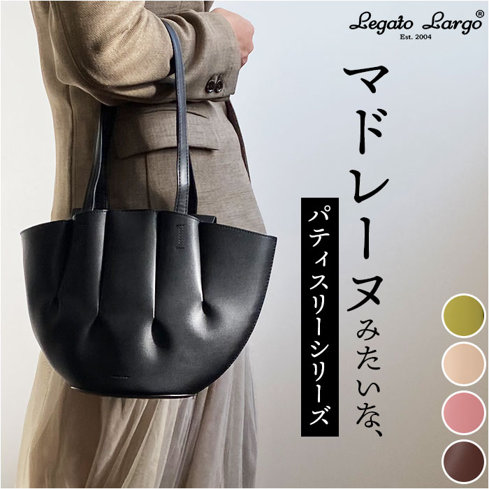 | 商品説明 | お菓子のカタチの可愛らしいバッグ♪大人気Legato Largoから、パティスリー・フェイクレザートートが新登場。フランス・ロレーヌ地方発祥のお菓子、マドレーヌをモチーフにした「パティスリーシリーズ」の大人可愛いミニトート。底がコロンと丸く、間口が貝殻のようにふわっと広がったユニークなフォルムで、バッグの中の小物が見やすく取り出しもスムーズ。開口部には開け閉めの楽ちんなマグネット式フラップが付いて、通勤時や外出先でのプライバシーにも配慮したつくり。メインルームはスマホや長財布・A5サイズの手帳など、普段使いの小物がミニマルに収納できる使い勝手のいいサイズ感。メインルーム内側とバッグの背面には、パスケースサイズのオープンポケット付き。ハンドルは肩掛けにしやすい程よい長さに設計し、手荷物が多くなったときでも安心。エスプレッソ(BK.ブラック)、チョコレート(BR.ブラウン)、マロン(GBE.グレーベージュ)、ピスタチオ(GR.グリーン)、ストロベリー(PI.ピンク)など、スイーツをイメージしたファンシーなカラーリングも魅力のひとつ。お友だちや同僚、誰のカバンとも被らない個性的なデザインが大好評!デイリーコーデの印象的なワンポイントに。 |