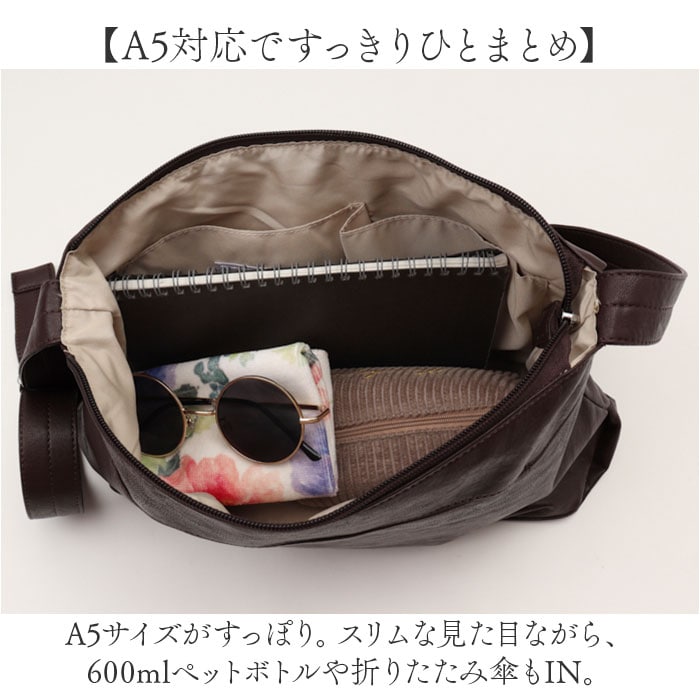 | 商品説明 | 【色んなシーンで頼れる相棒】使い勝手が良く、ヘビロテ確定☆「Legato Largo ユニプレーンショルダー」。【お手入れ簡単!ウォッシャブル仕様】汚れが気になったら、洋服のように手洗いできる合皮バッグ!いつも清潔をキープ。【柔らかく、滑らかなユニプレーン】手馴染みが良く、体にもフィットしやすい質感。軽やかな使い心地も魅力。【両手が空いてストレスフリー】ショルダーの長さを調節し、肩掛けや斜め掛け。両手を自由に使えて、移動もラクラク。【ダブル開口でセキュリティ面も安心】オープン式フラップ&天ファスナー。中身がこぼれ落ちず、プライバシーも確保。【A5対応ですっきりひとまとめ】A5サイズがすっぽり。スリムな見た目ながら、600mlペットボトルや折りたたみ傘もIN。【サクッと取り出せて迷子知らず】合計4つのポケットを配置。細々した物も、バッグの中で探す手間が不要。【お気に入りを選べるカラー】ベーシックや、ちょっとしたアクセントになるカラー。落ち着きのあるユニセックス仕様。【ポケット仕様】内側:オープンポケット×2フラップ下内側:オープンポケット×1背面:ファスナーポケット×1 |