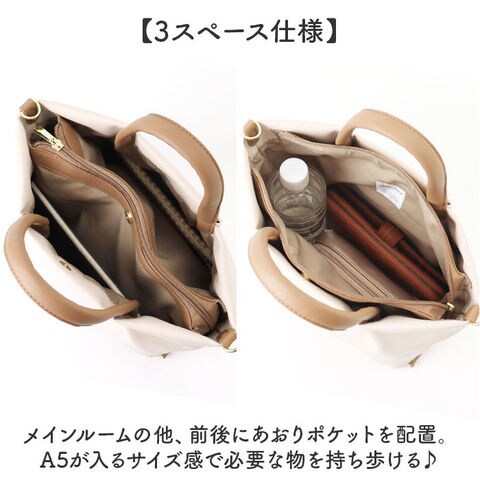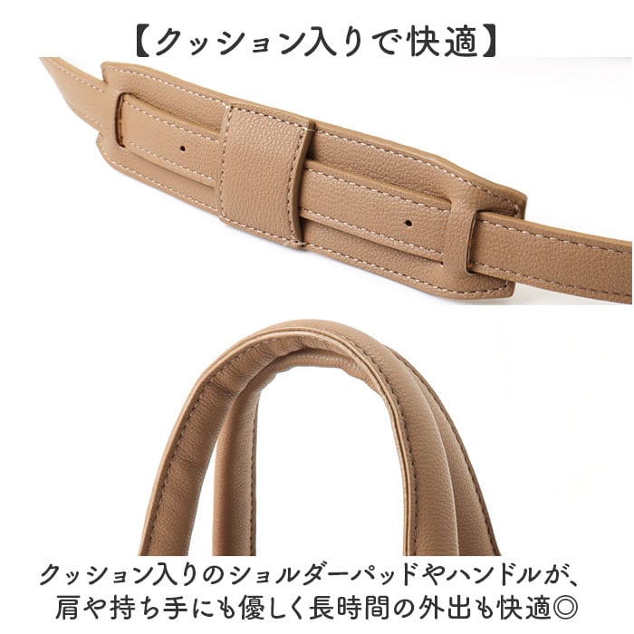 | 商品説明 | 【肩楽で美シルエット】Legato Largoから肩への負担を分散させる「肩楽」シリーズの2WAYバッグが登場。【クッション入りで快適】クッション入りのショルダーパッドやハンドルが、肩や持ち手にも優しく長時間の外出も快適◎【ショルダー付きで2WAY仕様】手持ちと斜め掛けの使い分けで、シーンに合わせた持ち方ができる♪【上品な合皮デザイン】水や汚れに強いPU素材でお手入れ簡単、キレイめスタイルにぴったり!【3スペース仕様】メインルームの他、前後にあおりポケットを配置。A5が入るサイズ感で必要な物を持ち歩ける♪【軽量で毎日活躍】カジュアルからオフィスまでデイリー使いに最適〇 |