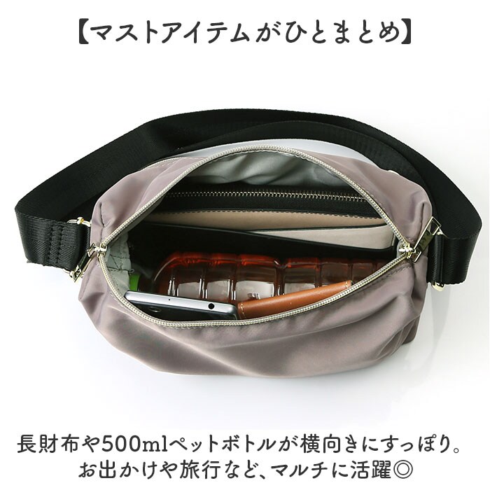 | 商品説明 | 【シンプルで使い勝手ばっちり】お出かけの相棒に♪「Legato Largo アーバン撥水ポリエステル ミニショルダー」【ミニマルスタイルにおすすめ】サッと手に取れて、身軽にお出かけできるサイズ感。かさばらず、使い心地も軽やか◎【両手が空いてストレスフリー】ショルダーベルトの長さを調節して、肩掛けや斜め掛け。アクティブに動く日も快適。【ちょっとの雨なら大丈夫】水滴や汚れをサッと弾く、撥水ポリエステル素材を使用。お手入れも拭き取るだけ。(※)完全防水ではありません。【ガバっと開くダブルファスナー開口】左右どちらからも大きくオープン。出し入れしやすく、セキュリティ面も安心。【マストアイテムがひとまとめ】長財布や500mlペットボトルが横向きにすっぽり。お出かけや旅行など、マルチに活躍◎【サッと取り出せて迷子知らず】内側と外側合わせて3つのポケットを配置。バッグの中で小物を探す手間が不要。【どんなコーデにも素敵にマッチ】微光沢な生地にゴールド金具をプラス。大人女子にぴったりのアイテム♪【ポケット仕様】内側:オープンポケット×2前面:ファスナーポケット×1 |