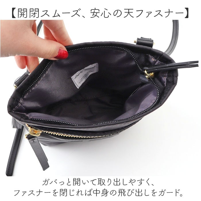 | 商品説明 | 【デイリーからトラベル等幅広く活躍】シーン問わずヘビロテ☆「Legato Largo デイリー撥水ナイロンミニショルダー」。【不意の雨にも対応◎万能シリーズ】汚れや水滴を弾きやすい撥水加工を施した、ナイロン製。お手入れも拭き取るだけ。(※)完全防水ではありません。【大人のキレイめカジュアルデザイン】微光沢のナイロンに、合皮をミックス。落ち着きがあり、年代問わず持ちやすい仕上がり。【両手が自由に!身軽にお出かけ】ショルダーを長さ調節して斜め掛け。軽量&コンパクトでお散歩、旅行やレジャーのサブ使いも。【開閉スムーズ、安心の天ファスナー】ガバっと開いて取り出しやすく、ファスナーを閉じれば中身の飛び出しをガード。【必要最低限をすっきりひとまとめ】折り財布やスマホ、パスケースなど貴重品を収納できる、スマートなシルエット。【サクッと取り出せて迷子知らず】外側に3つのポケットを配置。小ぶりながらも、細々した物を仕分けできる仕様。【お気に入りを選べるカラー】コーデに馴染みやすい、ベーシックカラーをラインナップ!シンプルで飽きが来ず、長く愛用◎【ポケット仕様】前面:オープンポケット×1、ファスナーポケット×1背面:オープンポケット×1 |