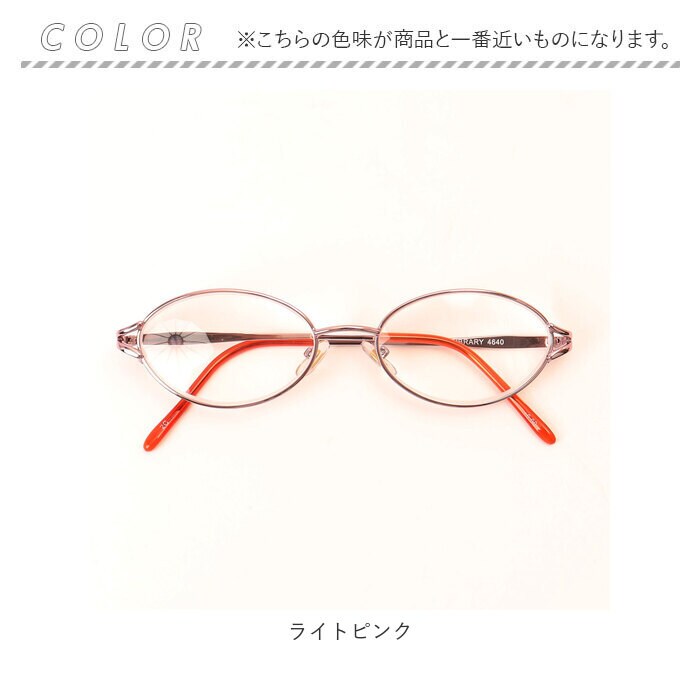 | 素材 | 【ライトピンク】 [フレーム]合金 [レンズ]アクリル 【ピンクレッド】 [フレーム]合金 [テンプル]ポリカーボネート [レンズ]アクリル |