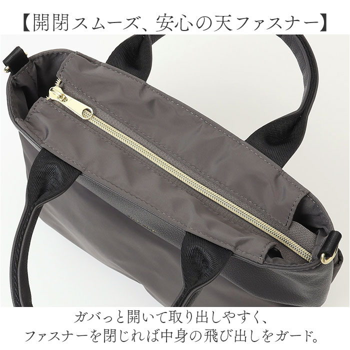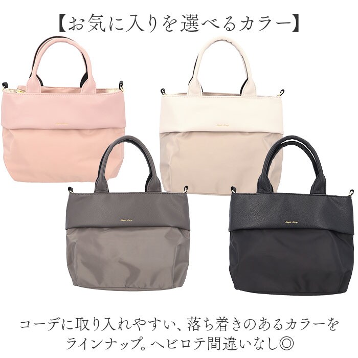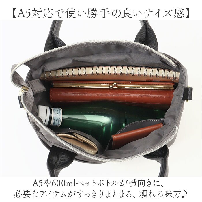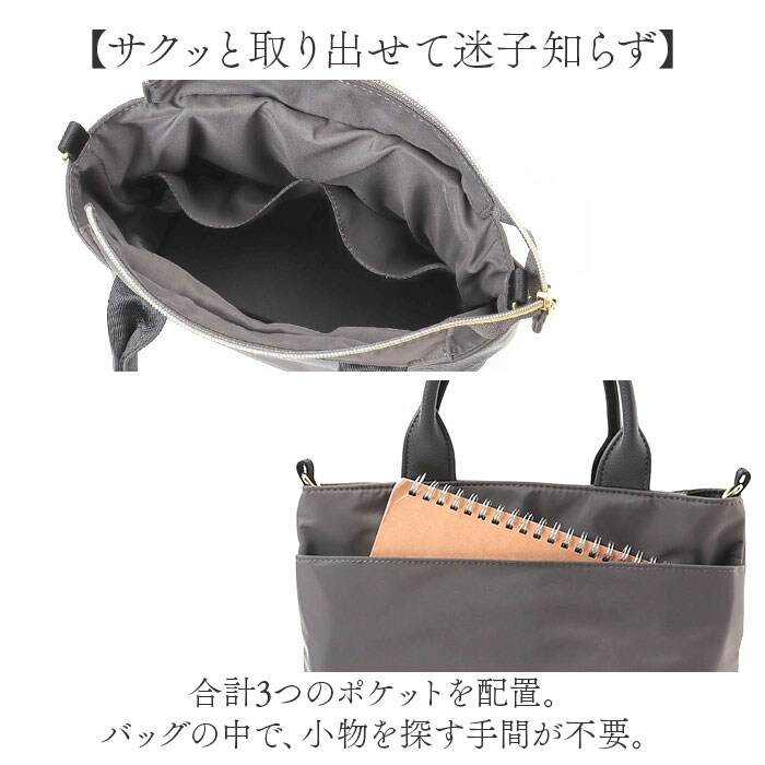 | 商品説明 | 【シーン問わずおしゃれに持てる相棒】色んなコーデにマッチ☆「Legato Largo グロッシーコンビ2WAYトート」。【大人カジュアルなテイストが魅力】ポリエステル生地に、柔らかなシボ合皮を程よくミックス。上品な女性らしい仕上がり。【お好みに合わせてスタイルチェンジ】手持ちではもちろん。ショルダーの長さを調節し、肩掛けや斜め掛けできる2way仕様。【開閉スムーズ、安心の天ファスナー】ガバっと開いて取り出しやすく、ファスナーを閉じれば中身の飛び出しをガード。【A5対応で使い勝手の良いサイズ感】A5や600mlペットボトルが横向きに。必要なアイテムがすっきりまとまる、頼れる味方♪【サクッと取り出せて迷子知らず】合計3つのポケットを配置。バッグの中で、小物を探す手間が不要。【ちょっとの雨なら大丈夫】汚れや水滴を弾きやすい、撥水加工済み。お手入れも拭き取るだけ。(※)完全防水ではありません。【お気に入りを選べるカラー】コーデに取り入れやすい、落ち着きのあるカラーをラインナップ。ヘビロテ間違いなし◎【ポケット仕様】内側:オープンポケット×2背面:オープンポケット×1 |
